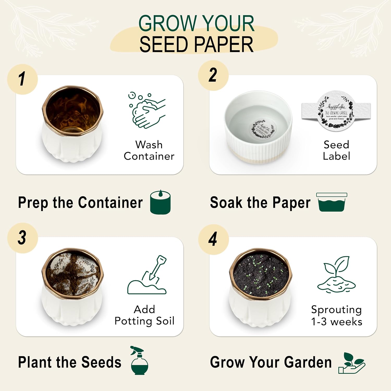 - FROM FLAME TO FLOWER: Once the natural soy wax has burned away, clean out the ceramic pot and plant the included wildflower seed label; watch as your non-toxic candles transform into vibrant gardens, extending the life of your candle