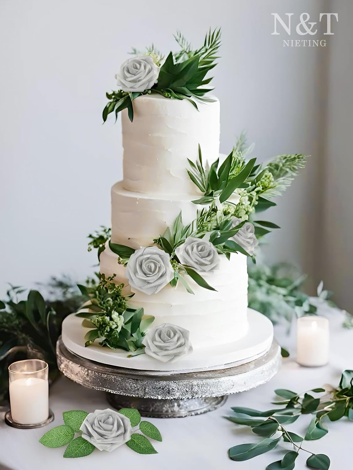 - Real Looking Roses: Realistic 25 silver white artificial roses. Our artificial roses looks pure and elegant. Enjoy the beauty of natural looking flowers without watering, add great touch to your home.
