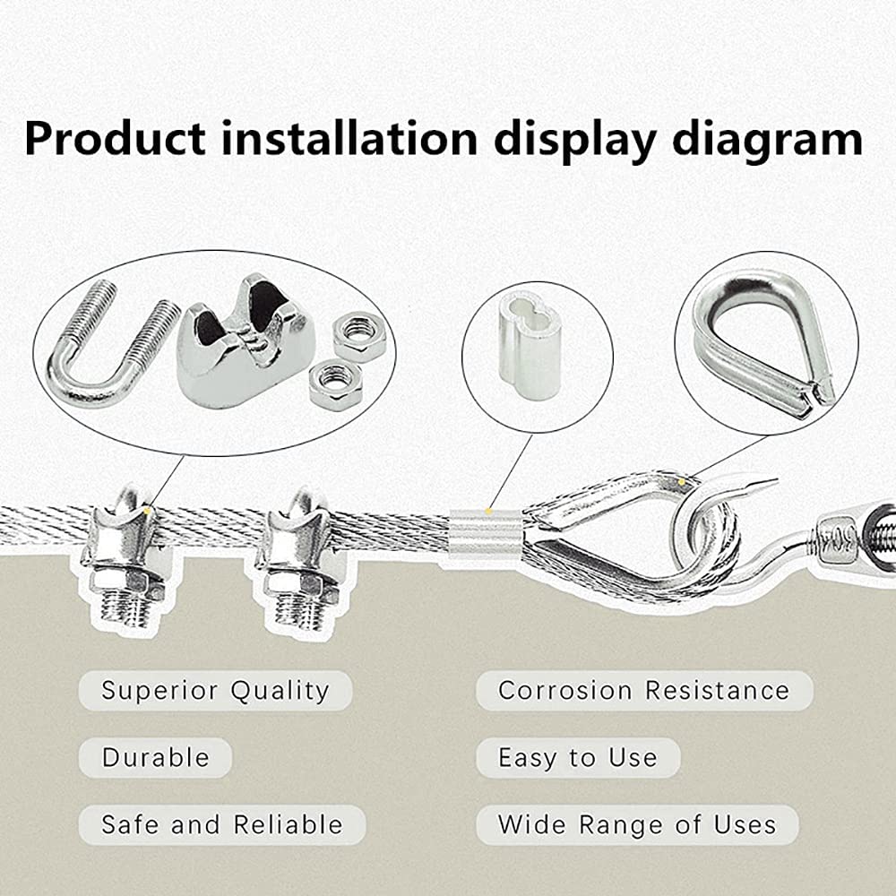 - 【High-quality material】: The steel wire kit is made of stainless steel 304, which has strong anti-corrosion and rust resistance; the smooth surface of the Vinyl Coated cable prevents the wire rope from rusting, making it longer and safer.