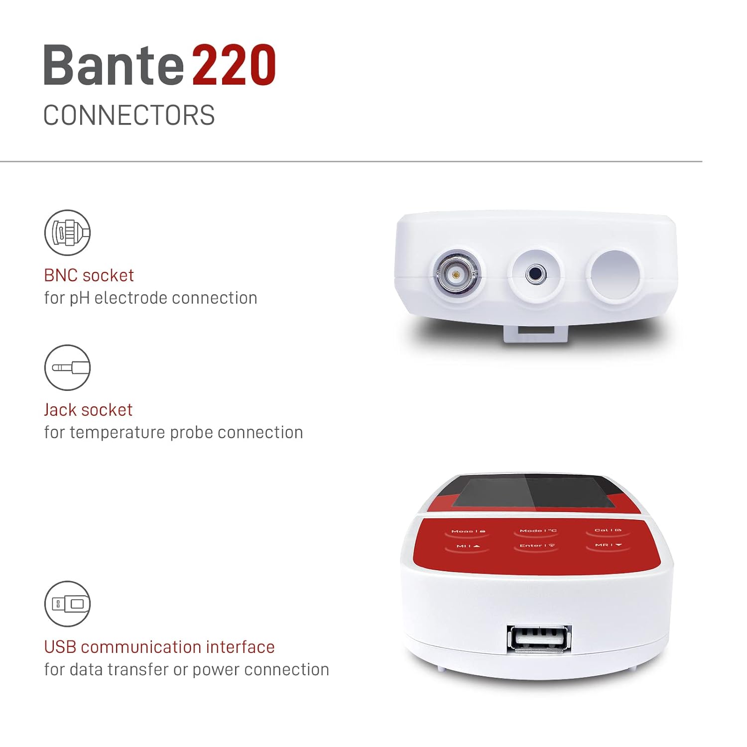 Bante 220 Portable pH Meter, ±0.01 pH Accuracy, 3 Points Calibration, Automatic Temperature Compensation, Auto-Read Measurement Endpoint, 100 Sets of Data Storage