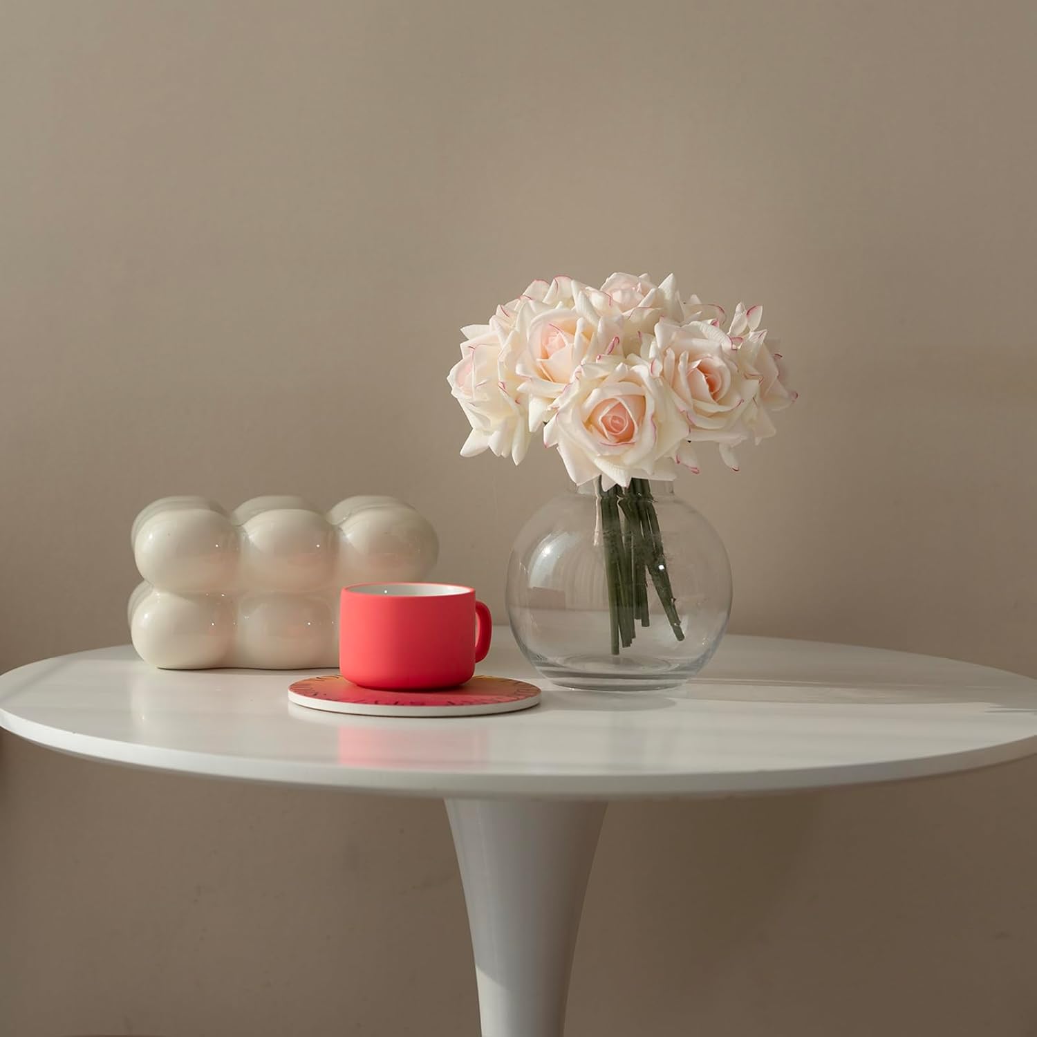 - [Application] Our fake rose bouquet is consisted of 10pcs single stem, which is perfectly suitable for a normal middle size flower vase. Exquisite appearance make it a good choice to be table flower and bridal bouquet.