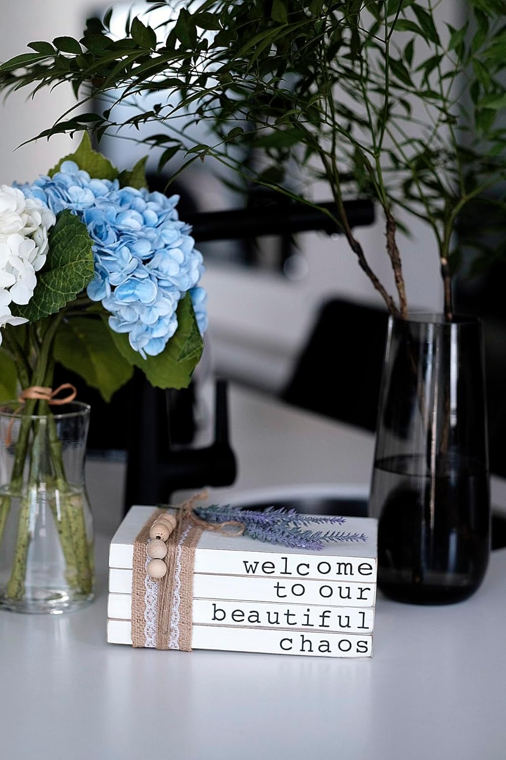 Lavender Inspired Welcome to Our Beautiful Chaos - Rustic Farmhouse Stacked Books - Set of 4 Wooden Book Bundle - Farmhouse Home Decor - Housewarming Gift