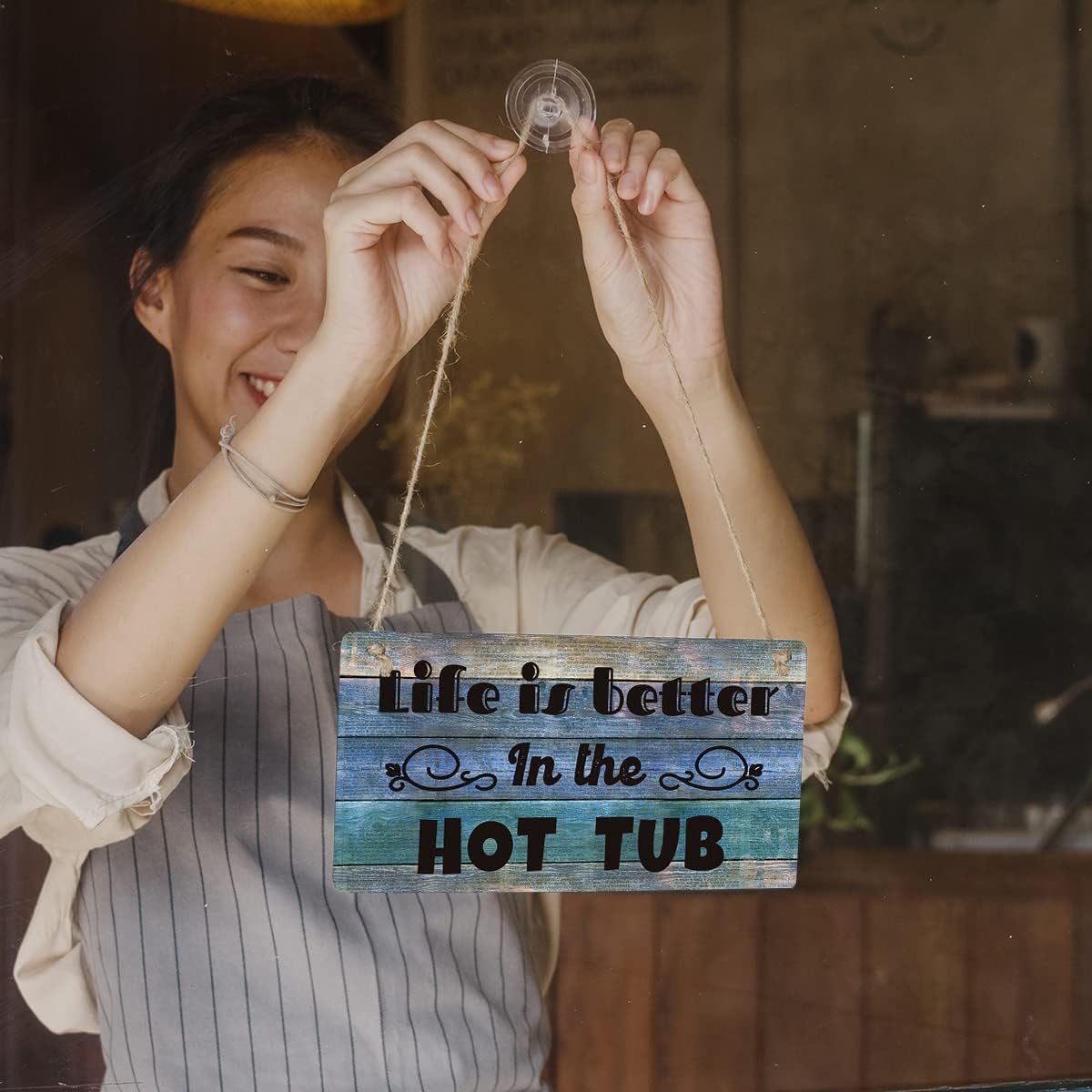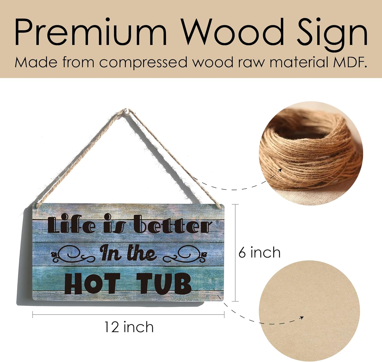 Qious Hot Tub Sign Funny Farmhouse Life is Better in the Hot Tub Wooden Hanging Sign Rustic Retro Wall Art Decor for Home Decoration 12 x 6 Inches…