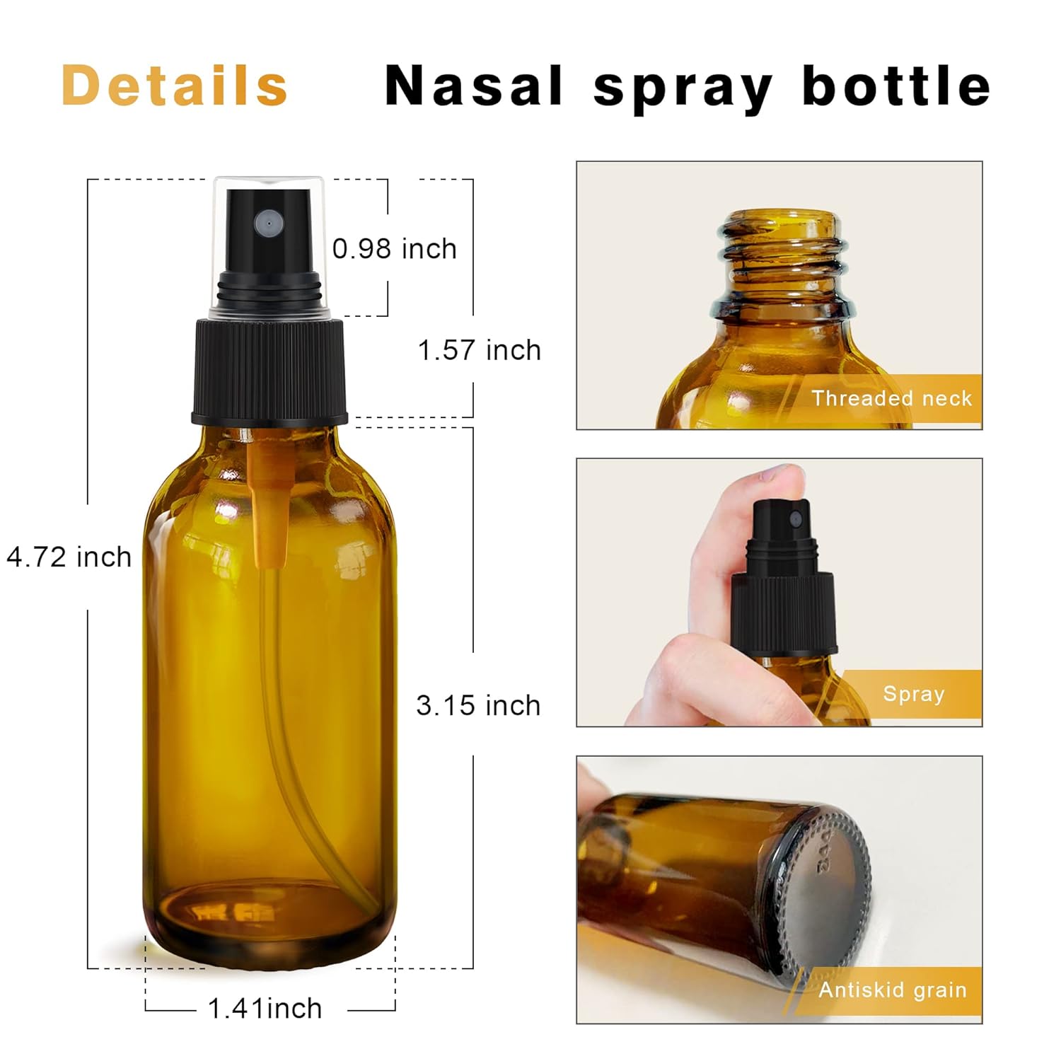 - SET INCLUDED: Amber glass spray bottles 2oz 4 pcs,6 spray heads,1 funnels, 1 dropper, 8 labels,additional nozzles and stickers,sufficient quantity and complete combination will meet your use and replacement needs,these small glass spray bottle is made of thick amber glass,sturdy and strong,good airtight sealing effect prevents rapid evaporation and Helps maintain the original flavor