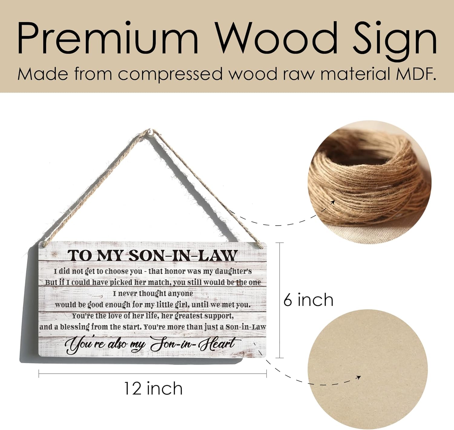 Qious Inspirational Gift Signs Farmhouse to My Son in Law I Did Not Get to Choose You That Honor Was My Daughters Wooden Hanging Sign Rustic Wall Art Home Decoration 12 x 6 Inches…