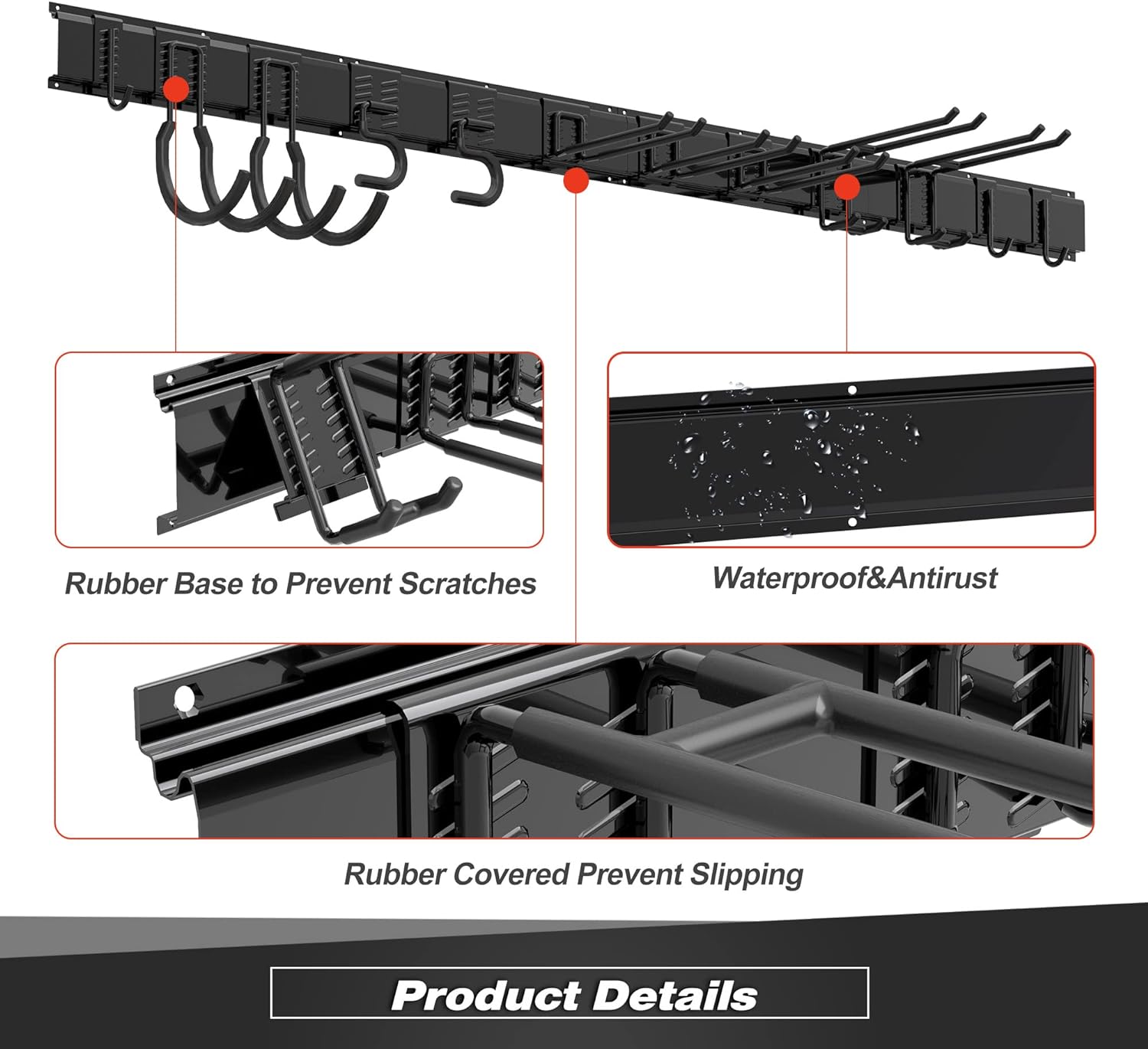 Garage Tool Storage Rack, Heavy Duty Garage Storage Organizer Rack System Wall Mounted Tool with 12 double hooks, 4 rails Garden Tool Rack