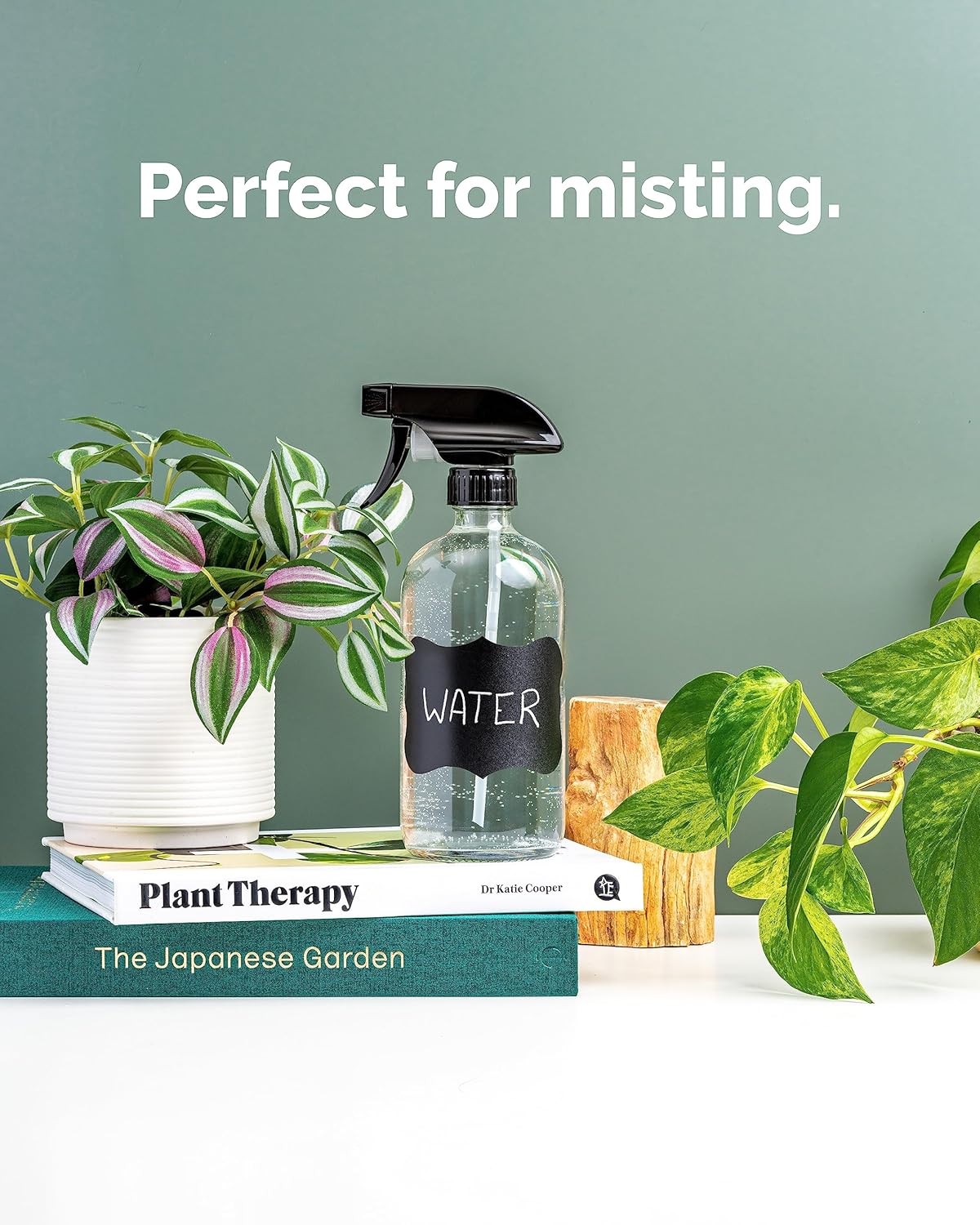 Vine Creations Glass Spray Bottles, 2 Pack Refillable Spray Bottles for Cleaning Solutions, Plant Misters, Clear Glass Spray Bottle for hair, 16 oz Mister Spray Bottle with Waterproof Labels