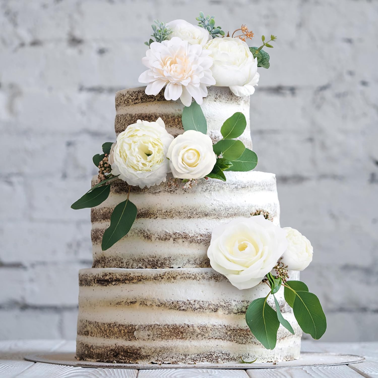 AGIRL Artificial Flowers Combo Fake Flowers Rose Silk Flowers with Stems for DIY Wedding Bouquets Centerpieces Arrangements Table Decor Bridal Baby Shower Party Home Decor (Cream White)