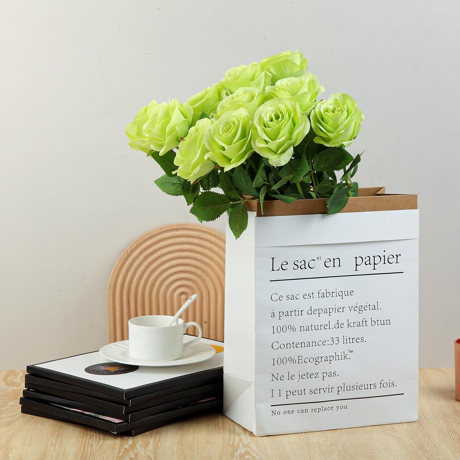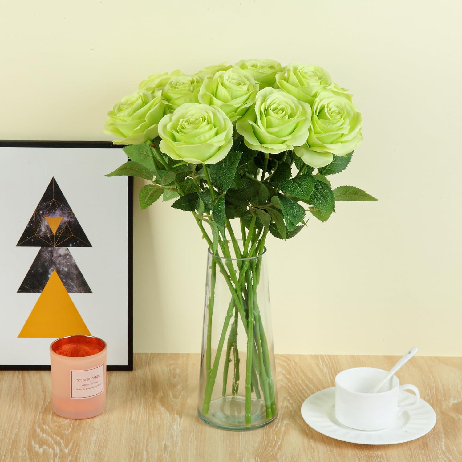 12pcs Roses Artificial Flowers Fake Roses Green Silk Roses White Silk Flowers Rose with Long Stems for Wedding Home Party Centerpieces Decorations