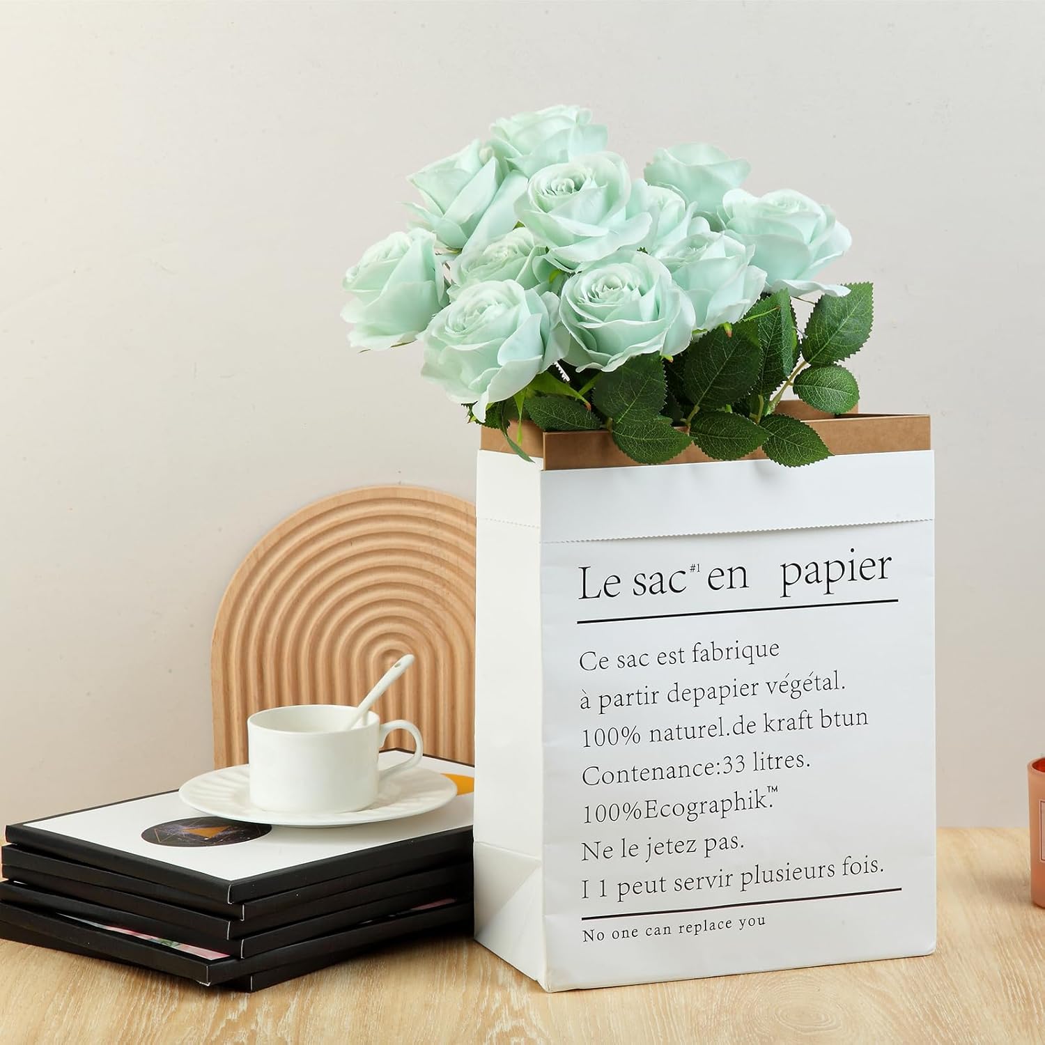 12pcs Roses Artificial Flowers Fake Roses Sage Green Silk Roses White Silk Flowers Rose with Long Stems for Wedding Home Party Centerpieces Decorations