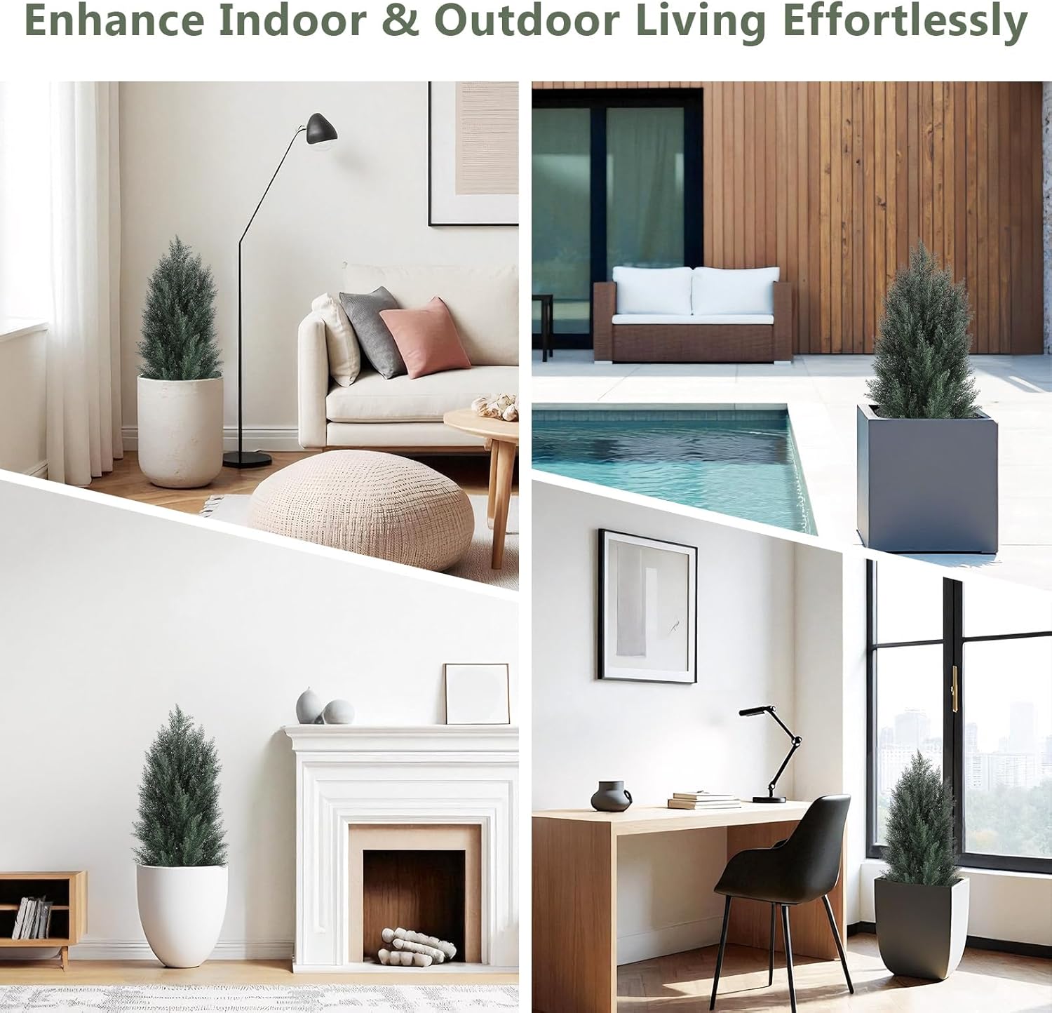 - 【REALISTIC & EVERGREEN LOOK】These cedar topiary trees artificial outdoor feature dense foliage with a natural, sculpted shape that mimics real evergreen bushes. Ideal for outdoor planters, entryways, or patio corners, they offer lifelike greenery that stays vibrant through all seasons. (Note: Branches arrive compressed. Gently shape them by hand for best results.)