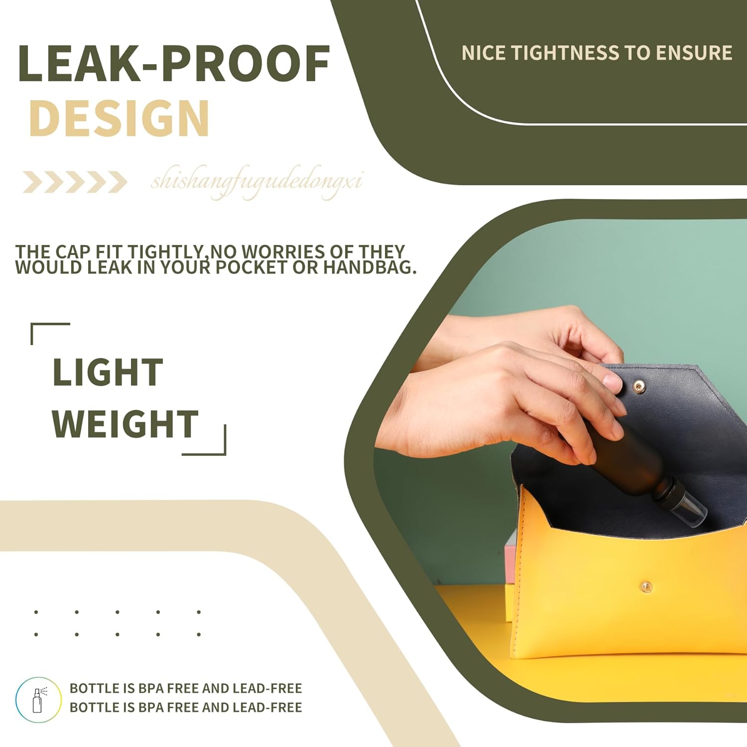 - đ§´ăLeakingproof DesignăThe glass spray bottles mouth won't fall off and the cap fit tightly,no worries of they would leak in your pocket or handbag.Nice Tightness to ensure that you can take our small spray bottle anywhere for daily face and body care.