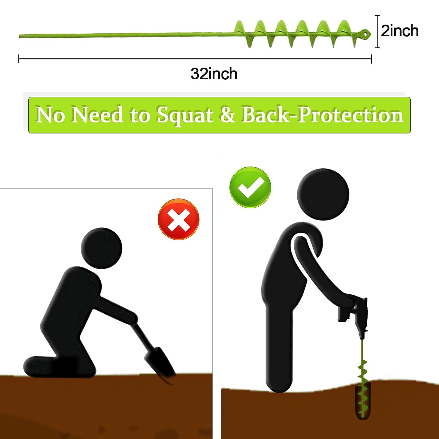 - Long handle 32inch planting auger provides extra leverage and makes it easier to dig into the ground without bending down.