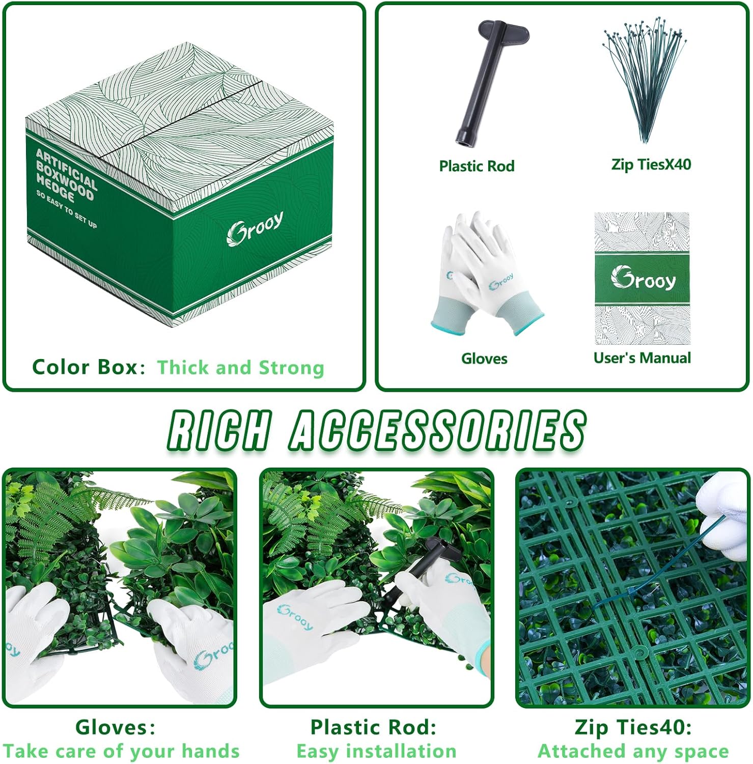 - 🌿【Premium Greenery, Built to Last】Grooy Artificial Boxwood Hedge Panels are made tough, using the latest in High-Density Polyethylene (HDPE). No matter the blazing sun or stormy weather, they'll stay vibrant and lifelike, adding a touch of nature that lasts.