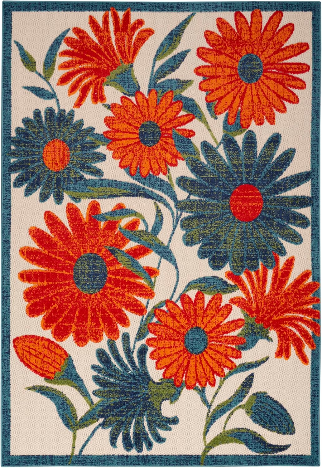 Nourison Aloha 4' x 6' Ivory Multicolor Fabric Outdoor Area Rug (4' x 6')