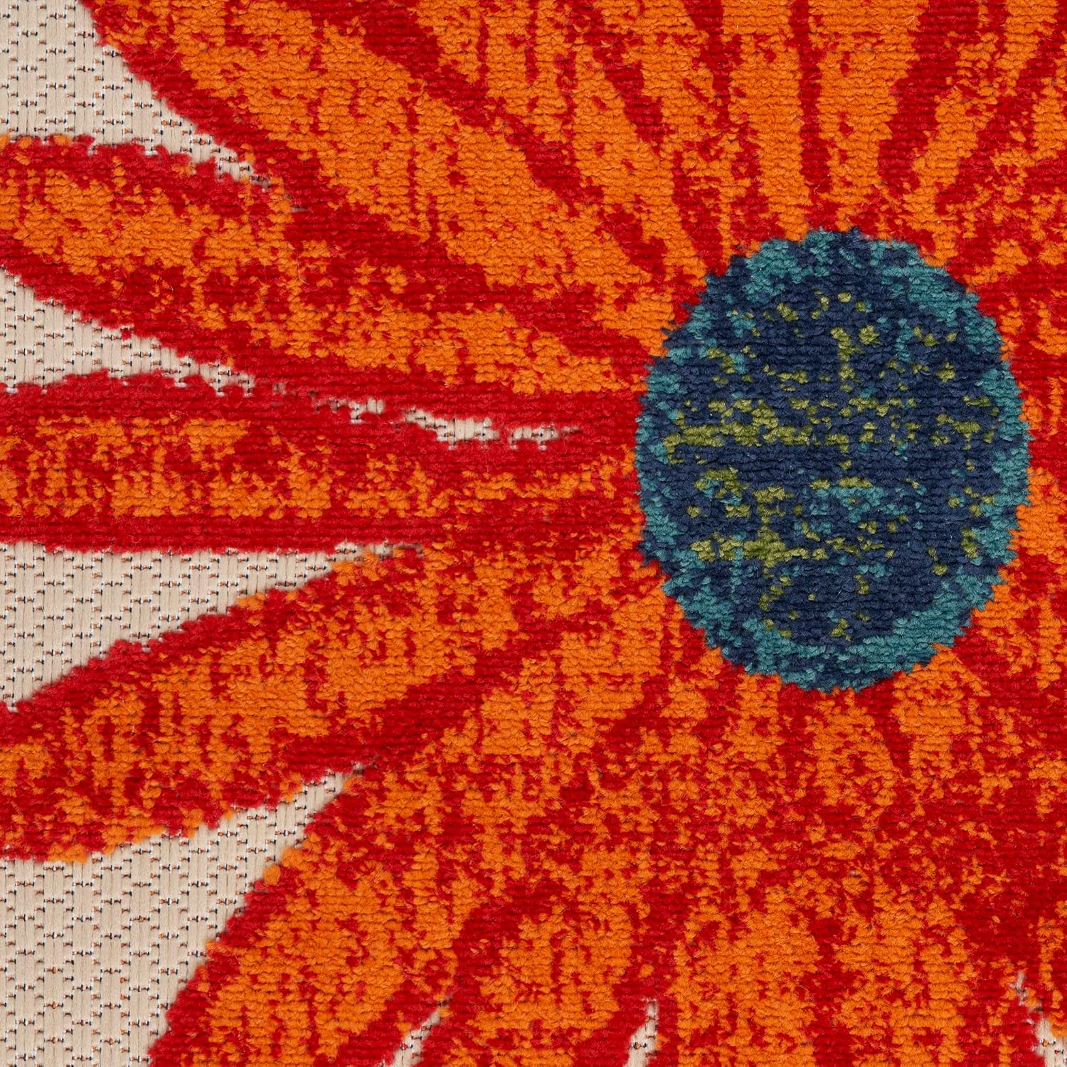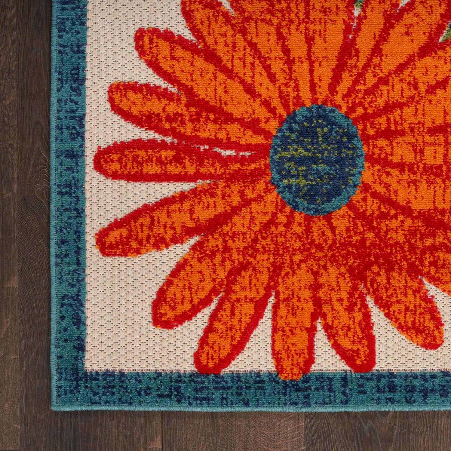 - EYE-CATCHING PATTERN: This floral outdoor rug is flatwoven with a subtly raised cut pile for a distinctive look and soft texture.