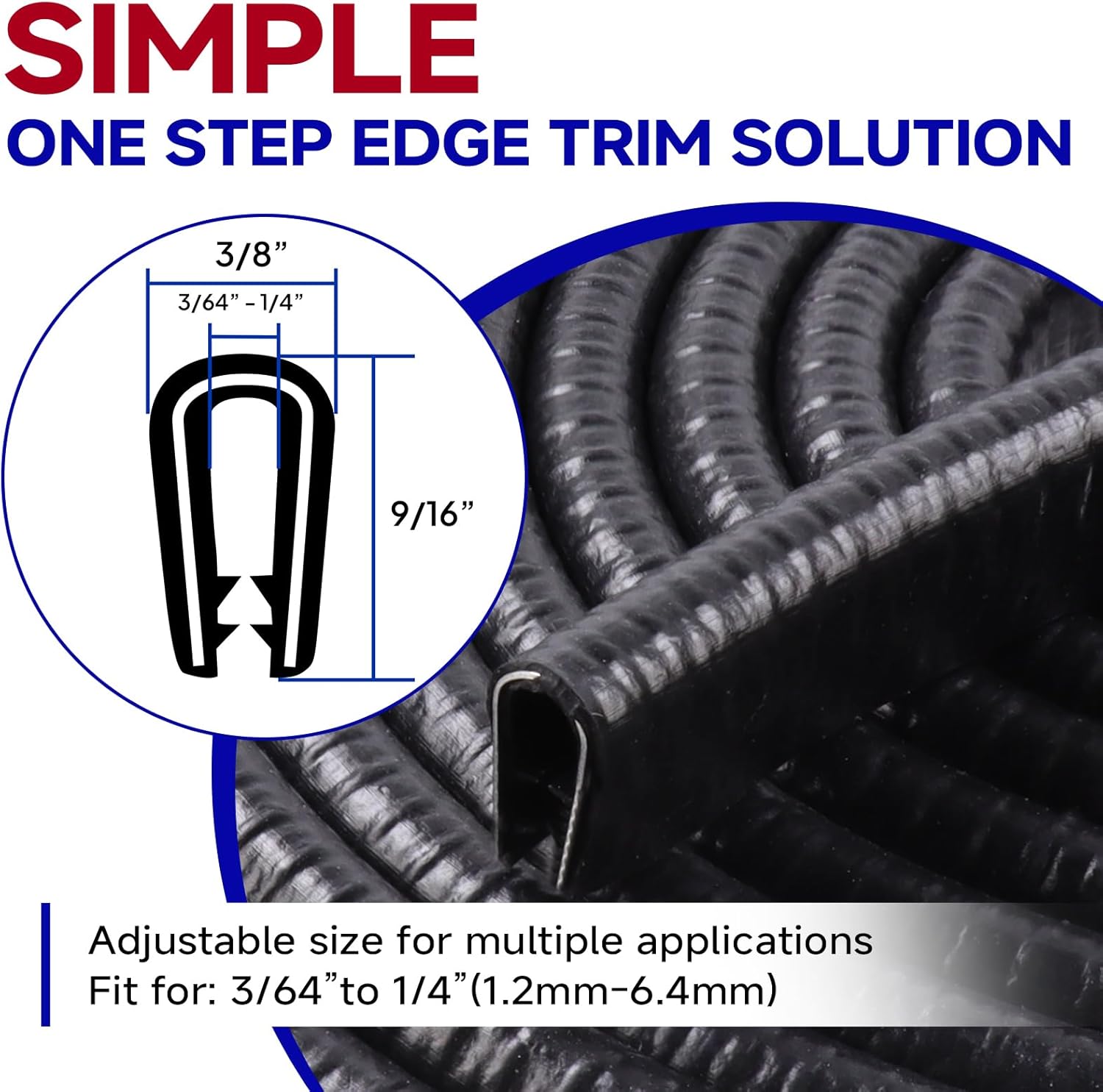 - ăWIDELY APPLICATIONăThis flexible edge trim can be used for the different material plate or panels you need. Fit for automotive, car door, fender, marine boat, mirror frame, windows, glass, steel tiles, sharp edges, cabinets, decoration, and home application, etc. Avoids bumps and scratches