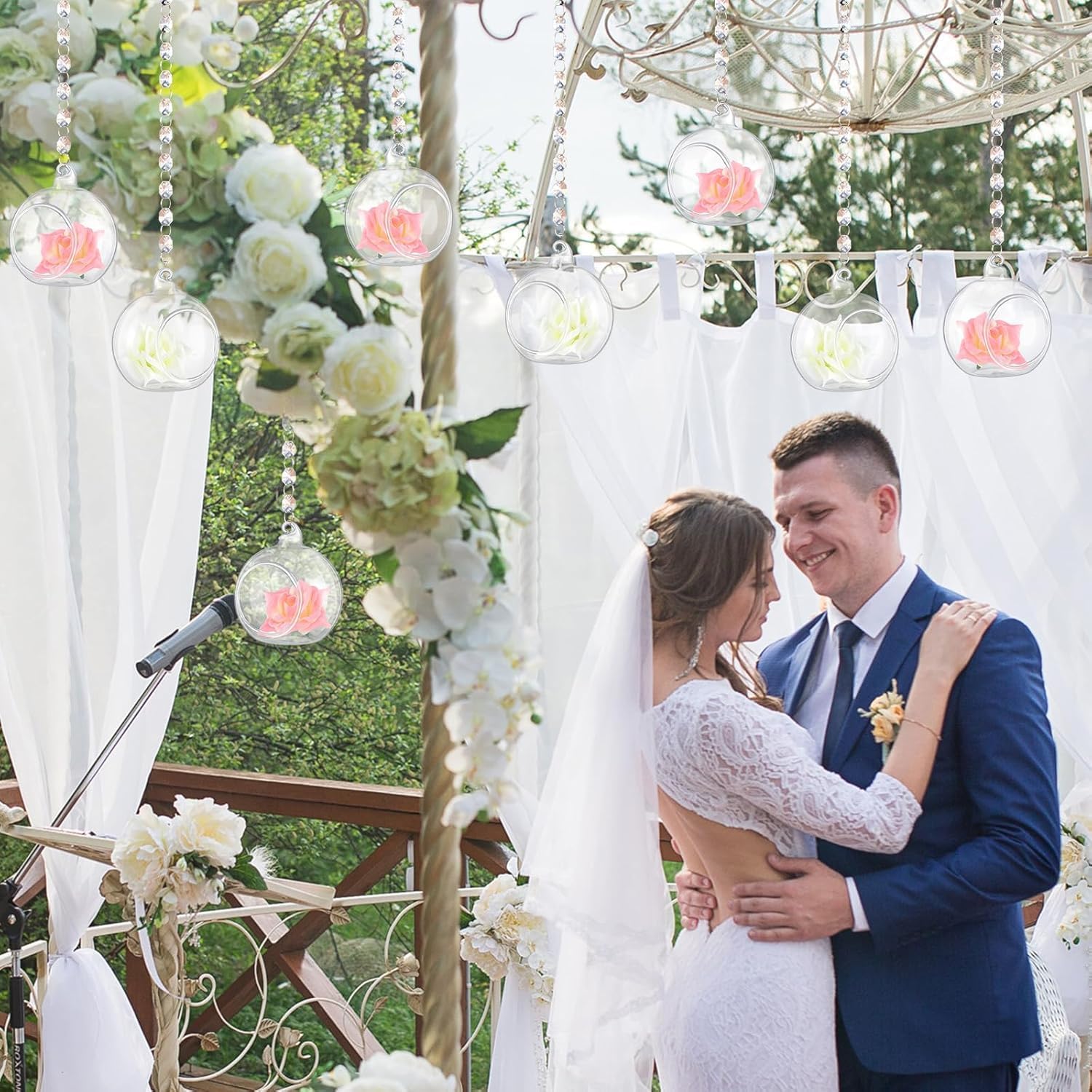 - Versatile Home Decoration: our hanging candle holder sets combine elegance and functionality; With 12 hanging glass tealight holder, 12 artificial flowers, and 6 bead garland strands, you can tailor your decorations according to the occasion or your personal taste; Swap out the included flowers for small LED candles or green plants, allowing for endless decorative possibilities