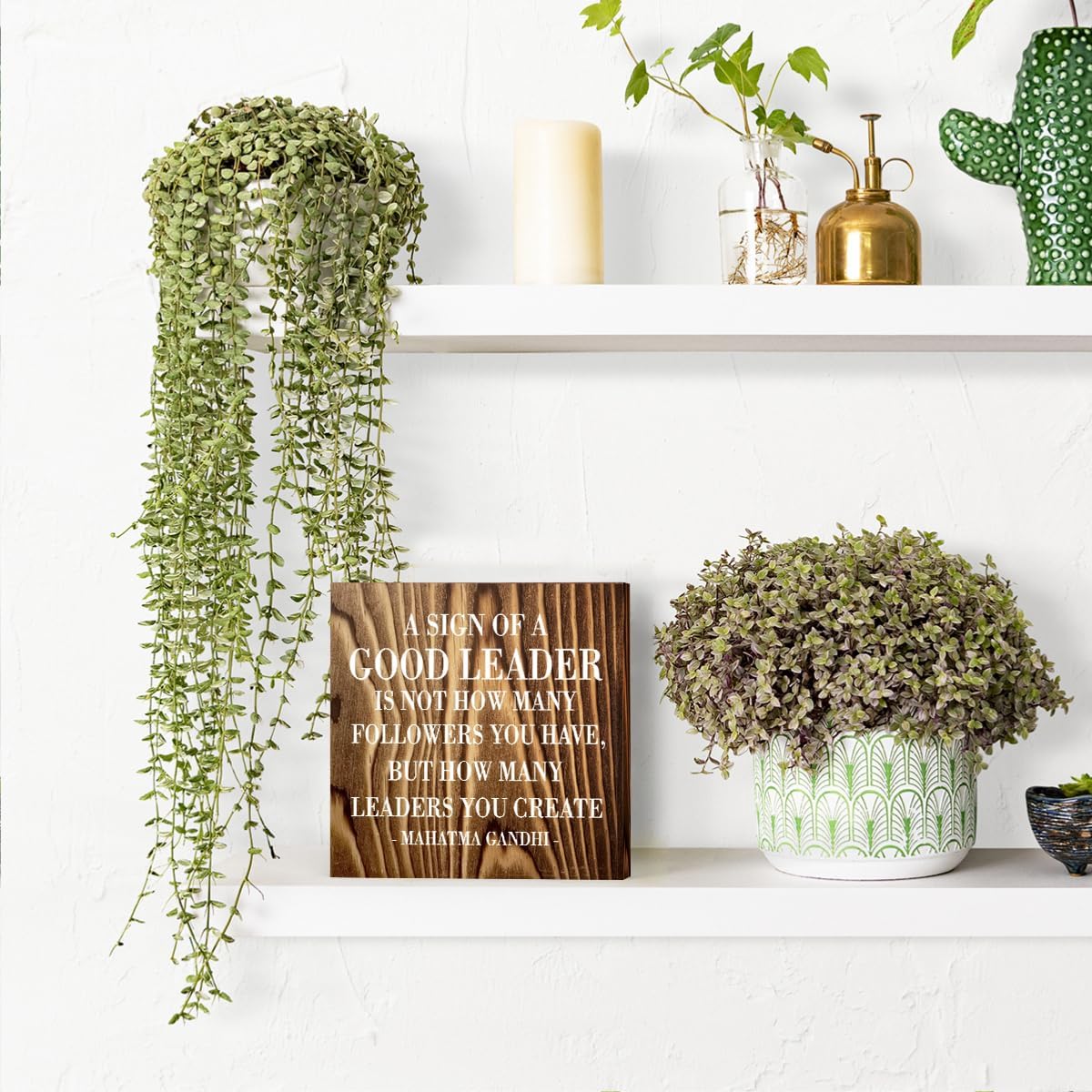 Inspirational A Sign of A Good Leader Desk Decor Wooden Box Sign Office Decor Rustic Wood Block Box Sign for Leader Boss Mentor Home Office Desk Shelf Table Decoration Leadership Gift Roasted color