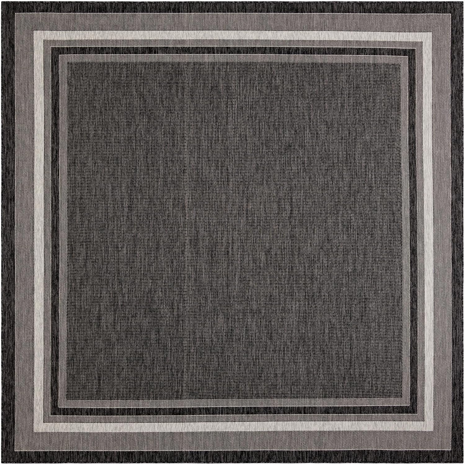 Unique Loom Outdoor Border Collection Area Rug - Soft Border (10' Square Black/Ivory)