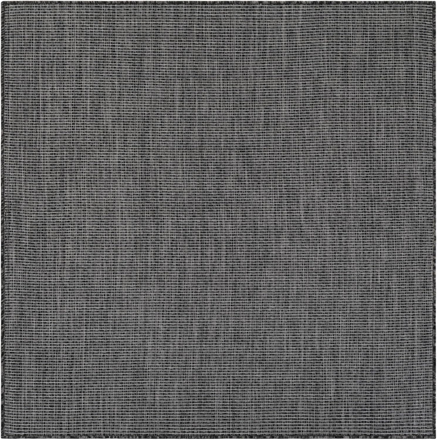 Unique Loom Outdoor Solid Collection Area Rug (5' 3" Square Black/Ivory)
