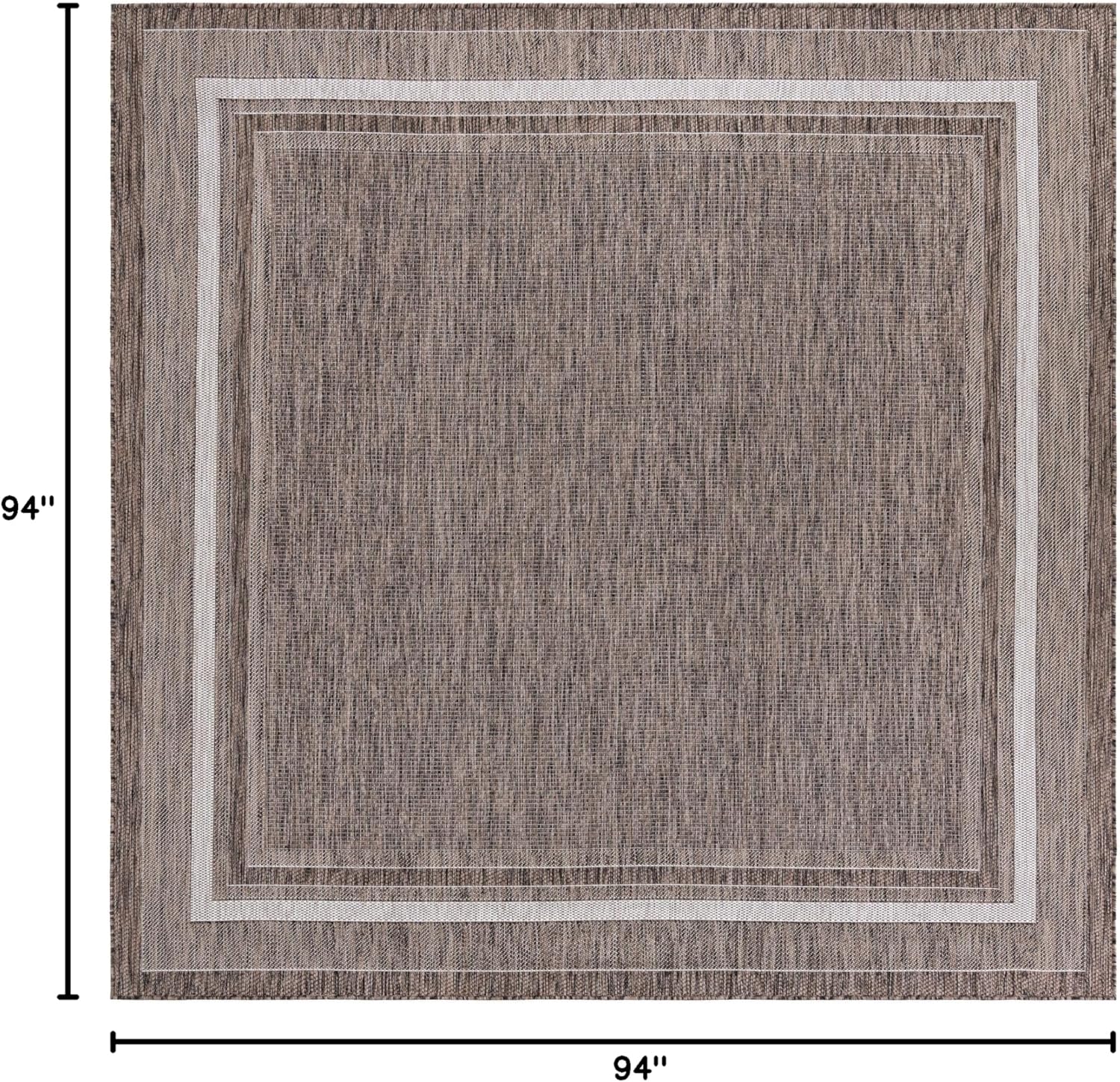 Unique Loom Outdoor Border Collection Area Rug - Soft Border (7' 10" Square Brown/Ivory)