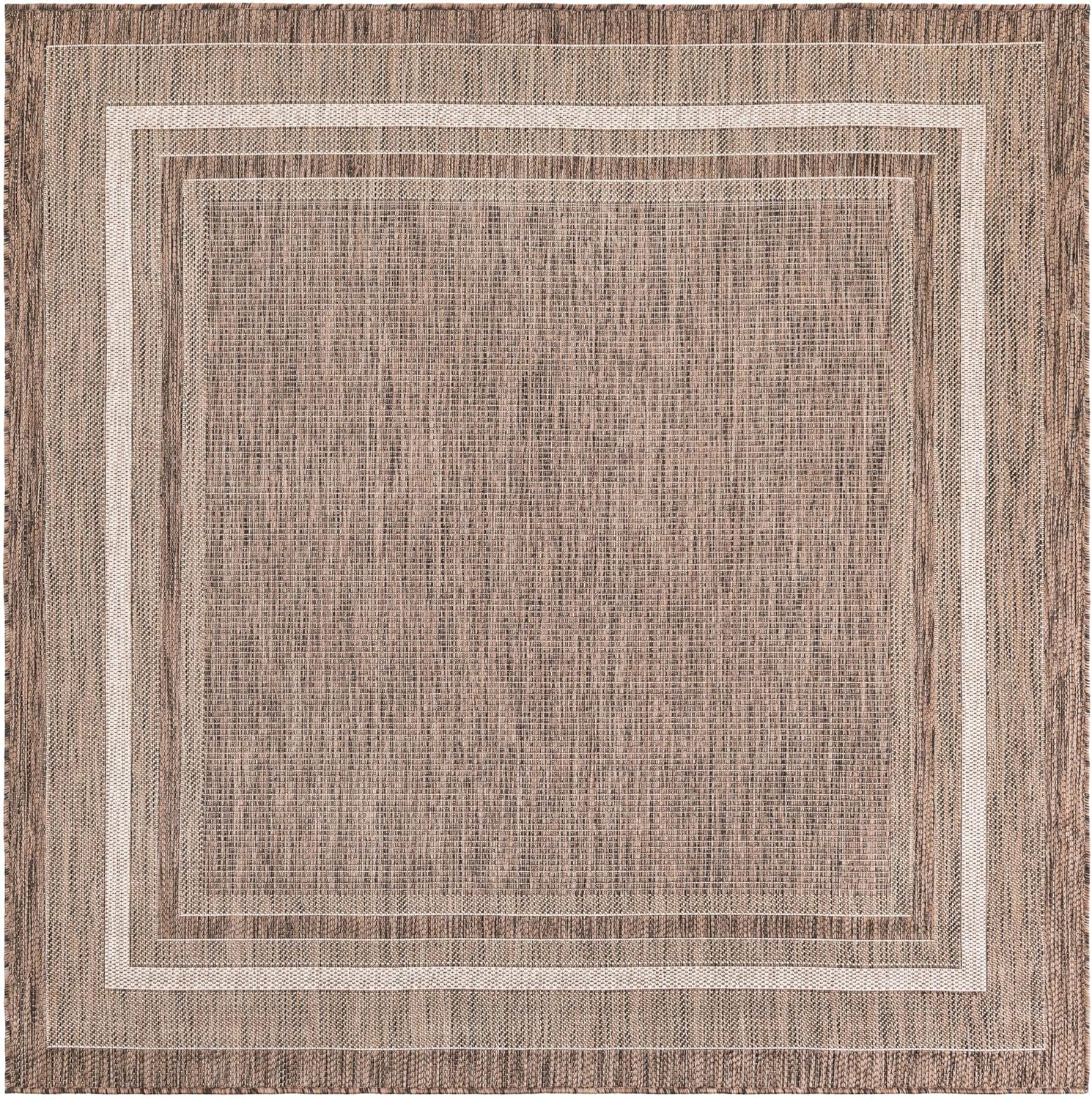 Unique Loom Outdoor Border Collection Area Rug - Soft Border (6' 1" Square Brown/Ivory)