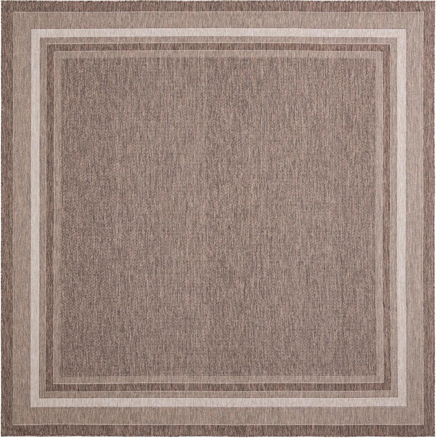 Unique Loom Outdoor Border Collection Area Rug - Soft Border (10' Square Brown/Ivory)