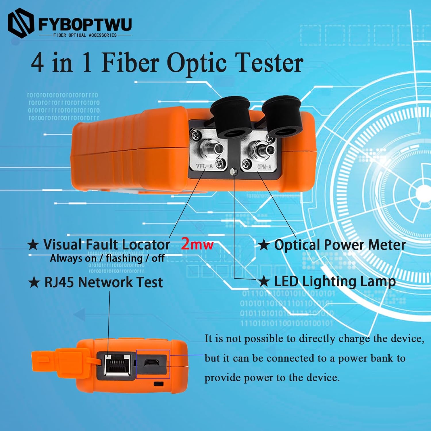 4 in 1 Function Fiber Optic Tester Portable Optical Power Meter (FC/SC/ST) & VFL 2mw Visual Fault Locator & LED & RJ45 Network Test, OPM & VFL, Range: (-70) dBm ~ (+6) dBm,2pcs