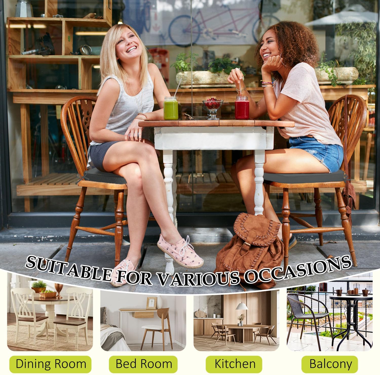 - Double Non-slip Design: Featuring 2 adjustable straps to secure the cushion to chair legs and a textured non-slip silicone base, these chair pads stay firmly in place on smooth surfaces. The dual anchoring system ensures stability, allowing you to sit comfortably without frequent readjustments