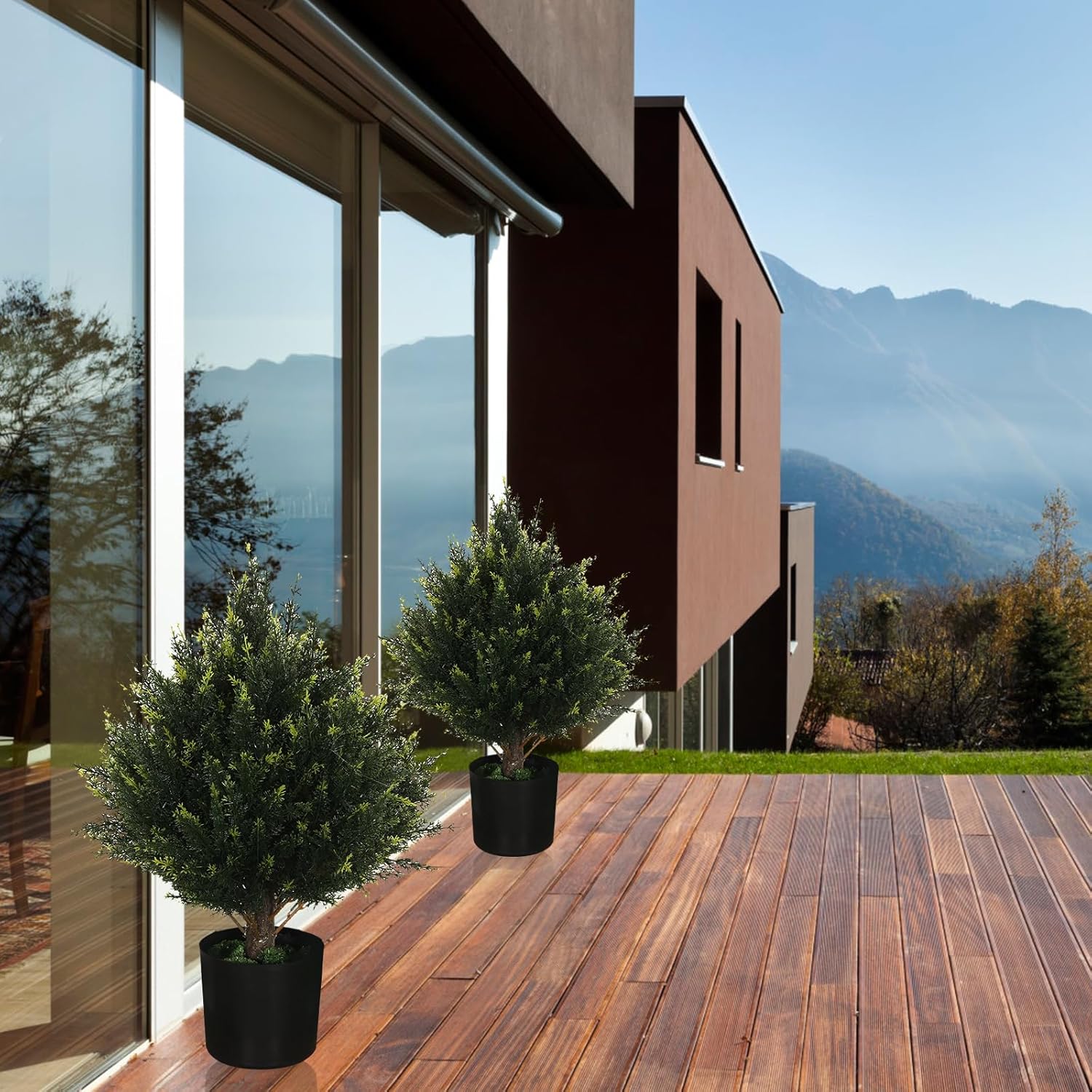 19” Artificial Cedar Outdoor Artificial Shrub Sunlight Resistant Leafy Potted Plant for Indoor Porch of Home and Office Artificial Outdoor Tree Topiary Trees