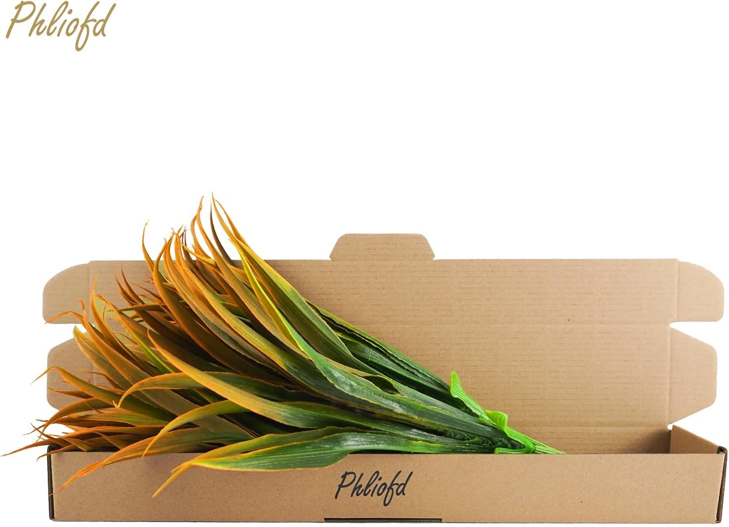 32 Pcs Artificial Grass Fake Plants 17.3in Outdoor Plastic Plants UV Resistant Greenery Fake Grass for Home Window Garden Office Patio Hanging Planter Pathway Front Porch Décor Orange Yellow