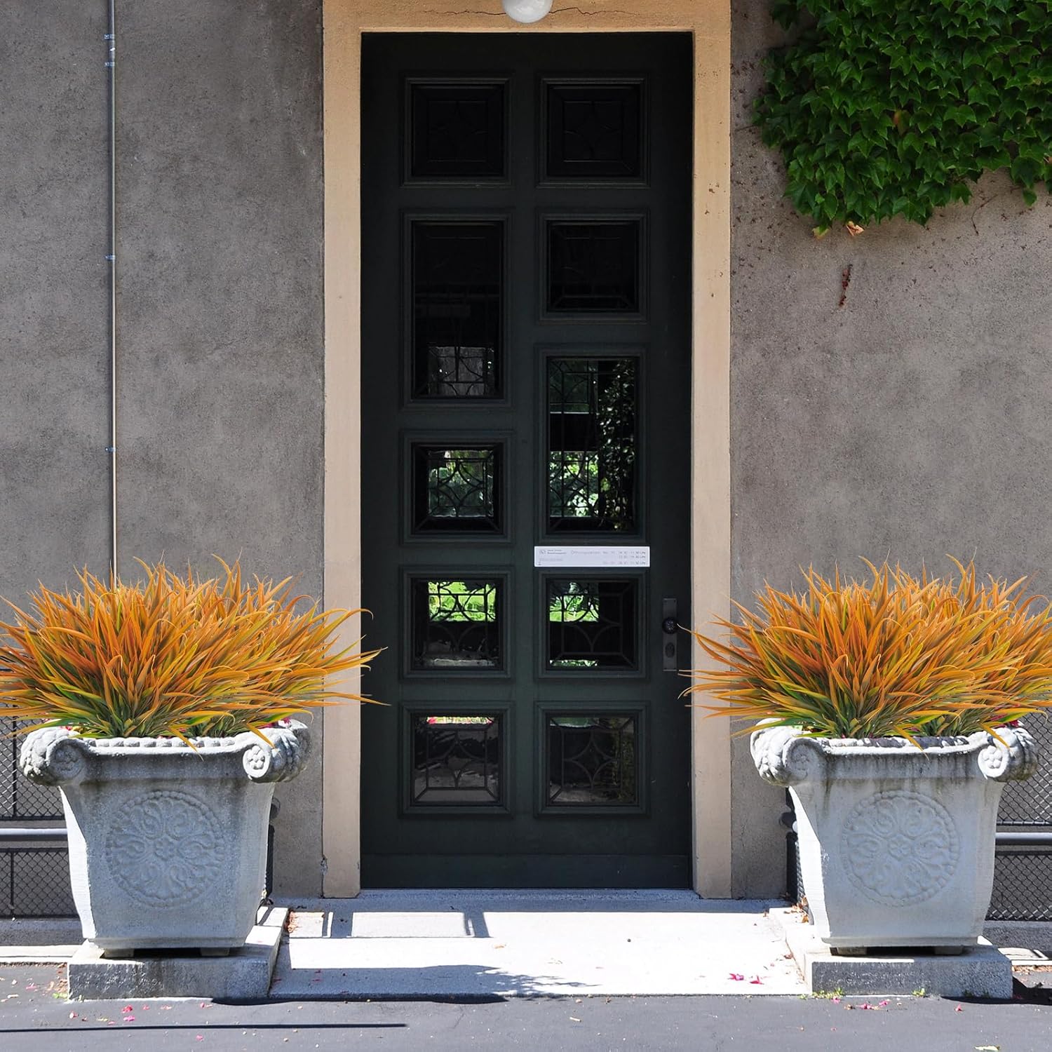 Uieke 28 Bundles Artificial Outdoor Plants UV Resistant Fake Grass Plants Faux Plastic Plants Greenery Shrubs for Home Garden Pathway Window Box Front Porch Cemetery Fall Decor, Autumn Orange
