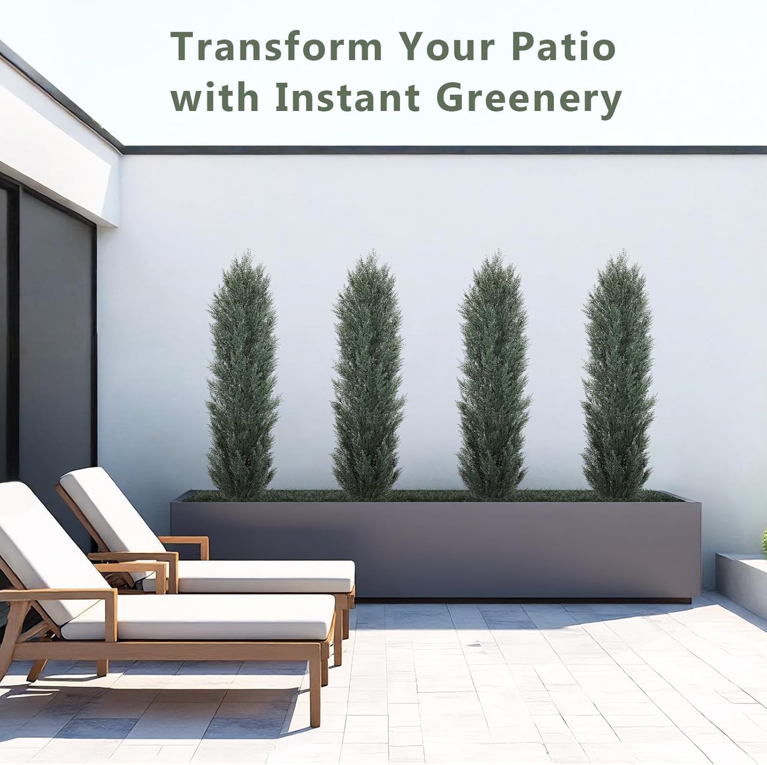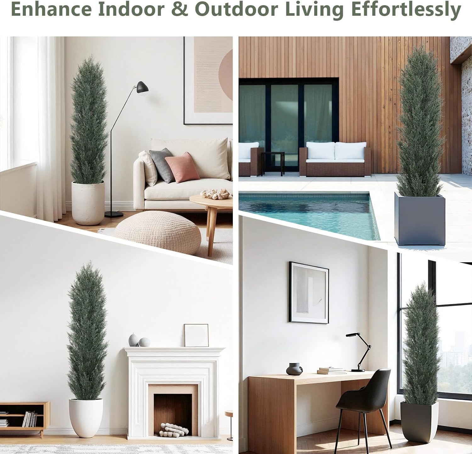 - 【Tall & Realistic Look – 6ft Natural Greenery】Standing 6 feet tall from the bottom of the pot to the tip of the tallest leaf, this artificial cedar tree features dense, lifelike greenery that mimics a real evergreen shape. Please note: The tree is shipped compressed. To reach its full height and natural look, gently fluff the branches upward by hand after assembly
