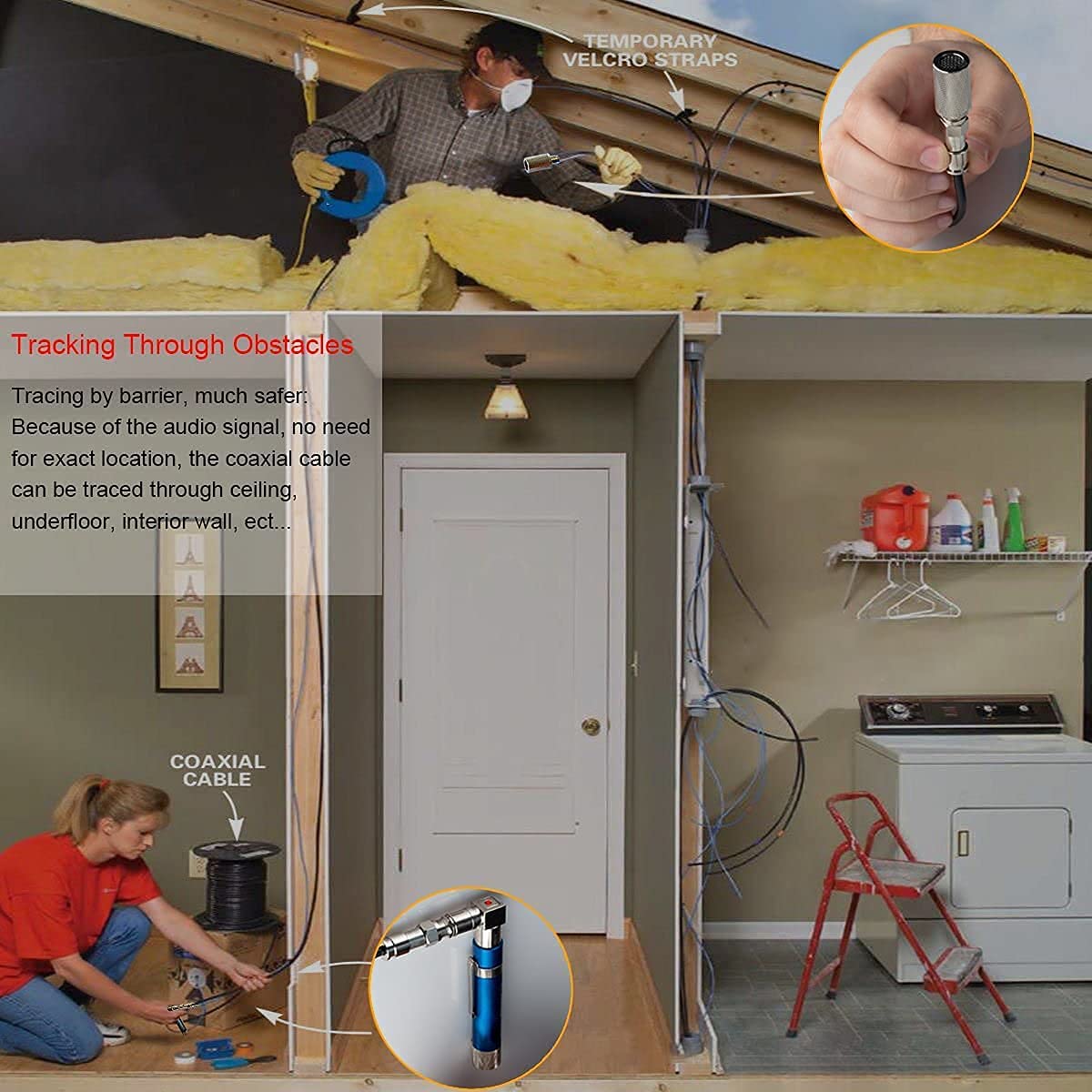 - 【TRACKING THROUGH OBSTACLES】The cable toner can track through obstacles for more safety. Because of the audio signal alert, coaxial cables can be traced through ceilings, under floors, interior walls, etc. without the need for exact location.