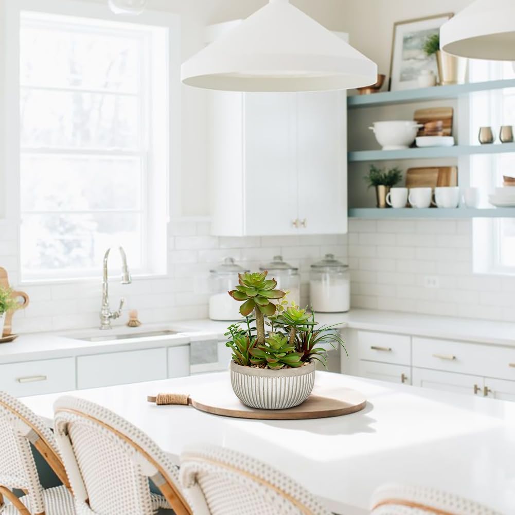 - Artificial potted plants decor: Small fake succulents are perfect for home, office desk, bedroom, bathroom shelf, kitchen, apartment, cafe, etc, faux plants in pots will add a natural accent to your home decor.