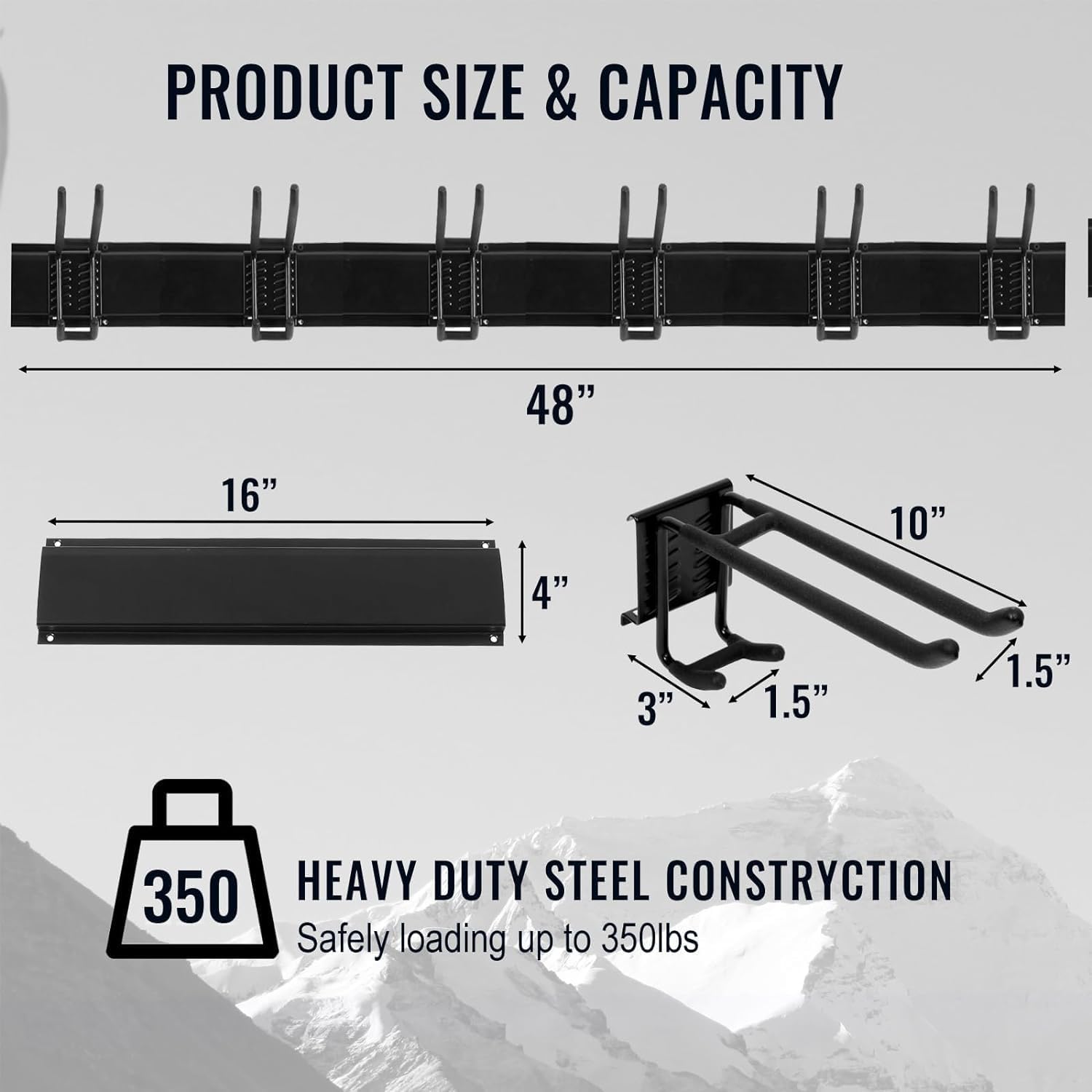 - HEAVY DUTY STEEL & SAFETY : Garage Storage rack can totally hold up to about 350 lb , Garden tool wall mount storage rack is made of high-strength steel for sturdy and strong organization.