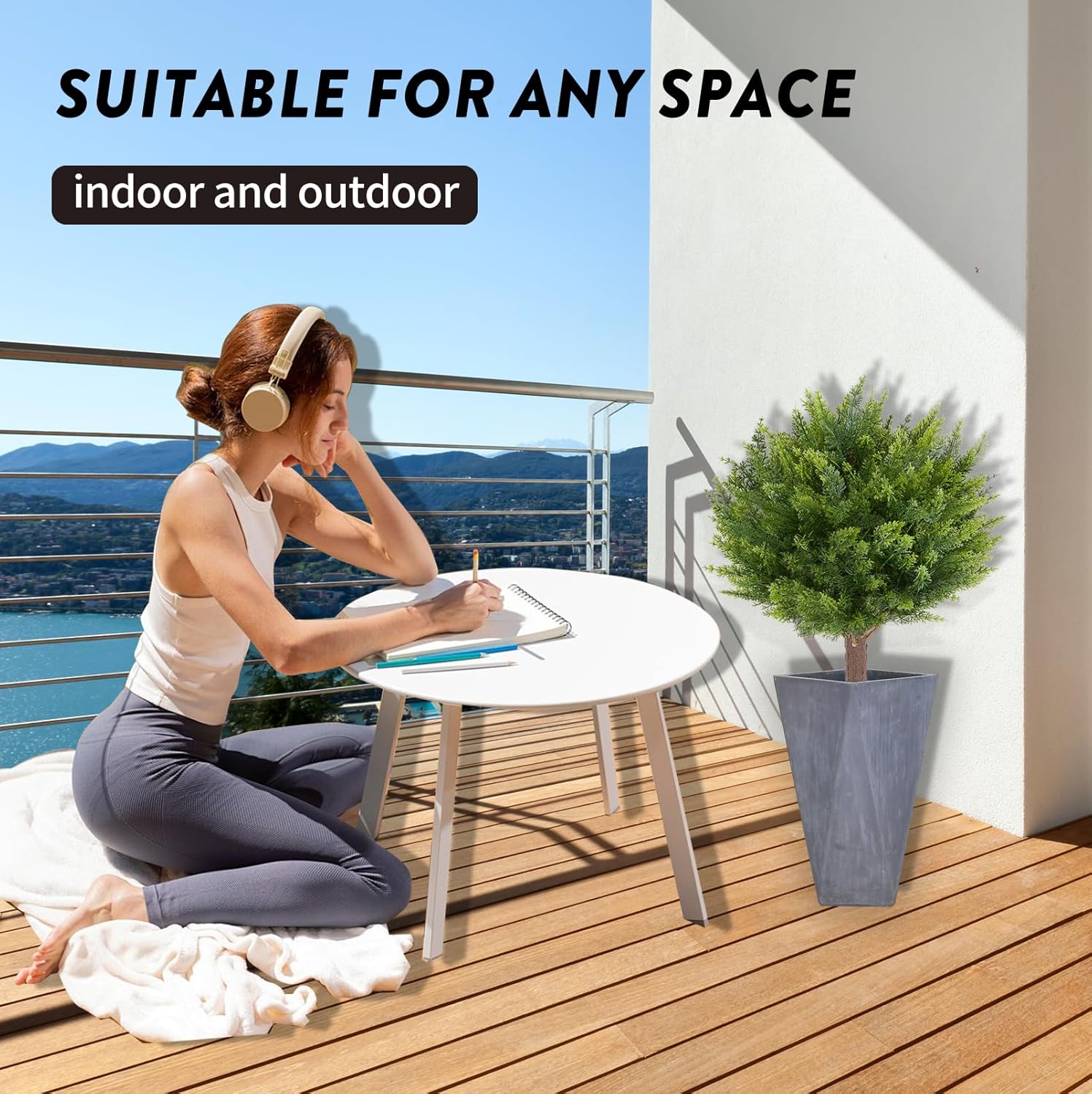 - ăMulti-medium Decoration ChoiceăThis outdoor artificial plant cedar ball tree is realistic looking, each simulated shrub plant comes with high quality black ground spikes, you can put them into any matching pots or insert them directly into the soil, which can better match the style of your house
