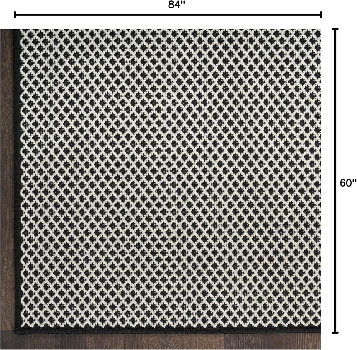 Nourison Home Courtyard Black White 5' x 7' Area Rug - Easy Clean, Non Shedding, Bed Room, Living Room, Dining Room, Kitchen (5' x 7')
