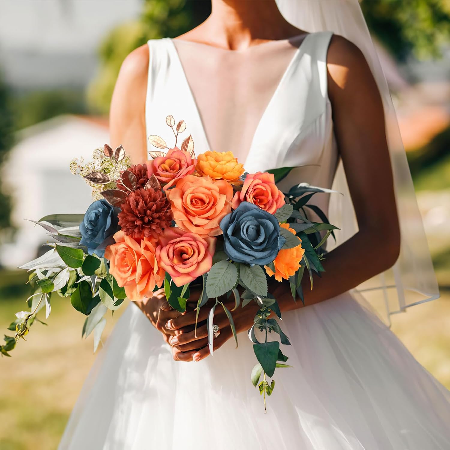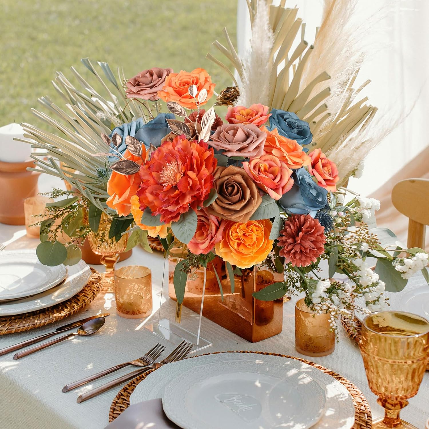 AGIRL Artificial Flowers Combo Silk Mix Purple Fake Flower with Stems for DIY Wedding Bouquets Centerpieces Arrangements Table Chair Decor Baby Shower Home Decor (Teal Orange)
