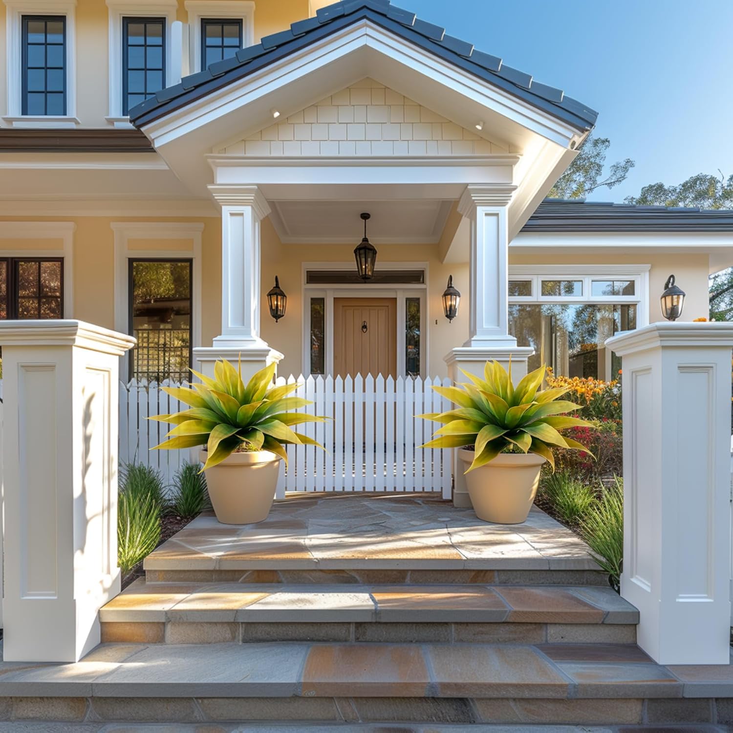 - 🌵About The Large Fake Plants Color: natural yellow , replica of the real agave color, delicate and durable, outdoor sun protection.Low Maintenance Unlike real plants, these artificial agave planters require no watering, pruning, or fertilizing. faux succulent outdoor plant enjoy the beauty of greenery without the hassle of maintenance.