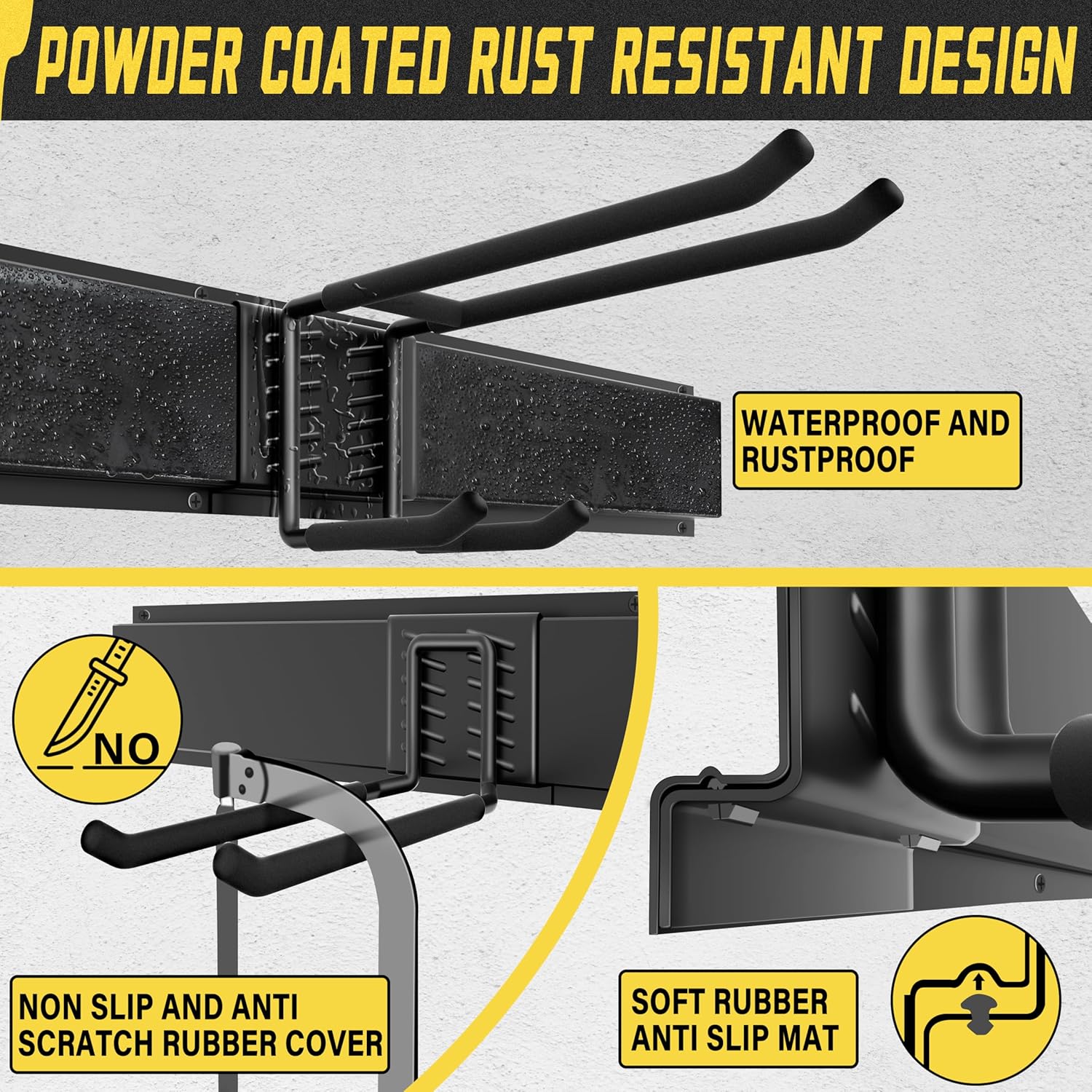 - VERSATILE TOOL RACK:Our Garage Storage System Isn't Just for Your Garage Tools;it’s Perfect for Arranging Garden Tools,Brooms,Hoses,and Even Sports Equipment Like Hockey Sticks And Ski Gear.This Multifunctional Storage Solution Maximizes Your Space.
