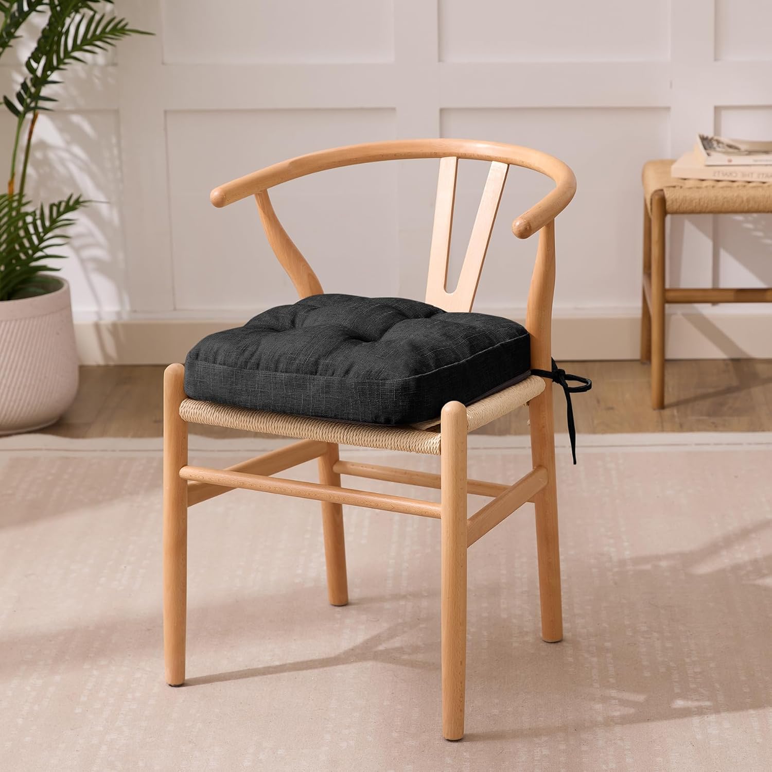 Chair Cushions for Dining Chairs, Dining Chair Cushions, Tufted Indoor Chair Pads with Ties & Non Slip Backing, Seat Cushions for Kitchen Chairs 16.5” x 16.5” x 3.5”, Set of 6, Black