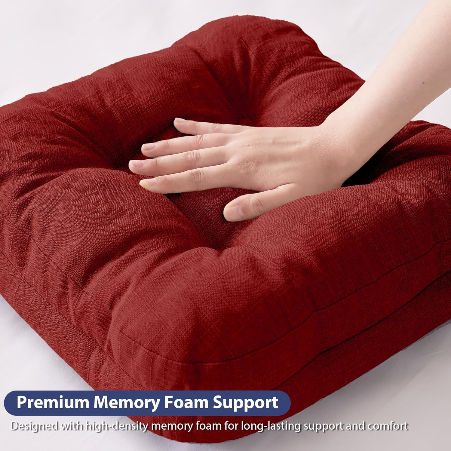 Chair Cushions for Dining Chairs, Dining Chair Cushions, Tufted Indoor Chair Pads with Ties & Non Slip Backing, Seat Cushions for Kitchen Chairs 16.5” x 16.5” x 3.5”, Set of 4, Red