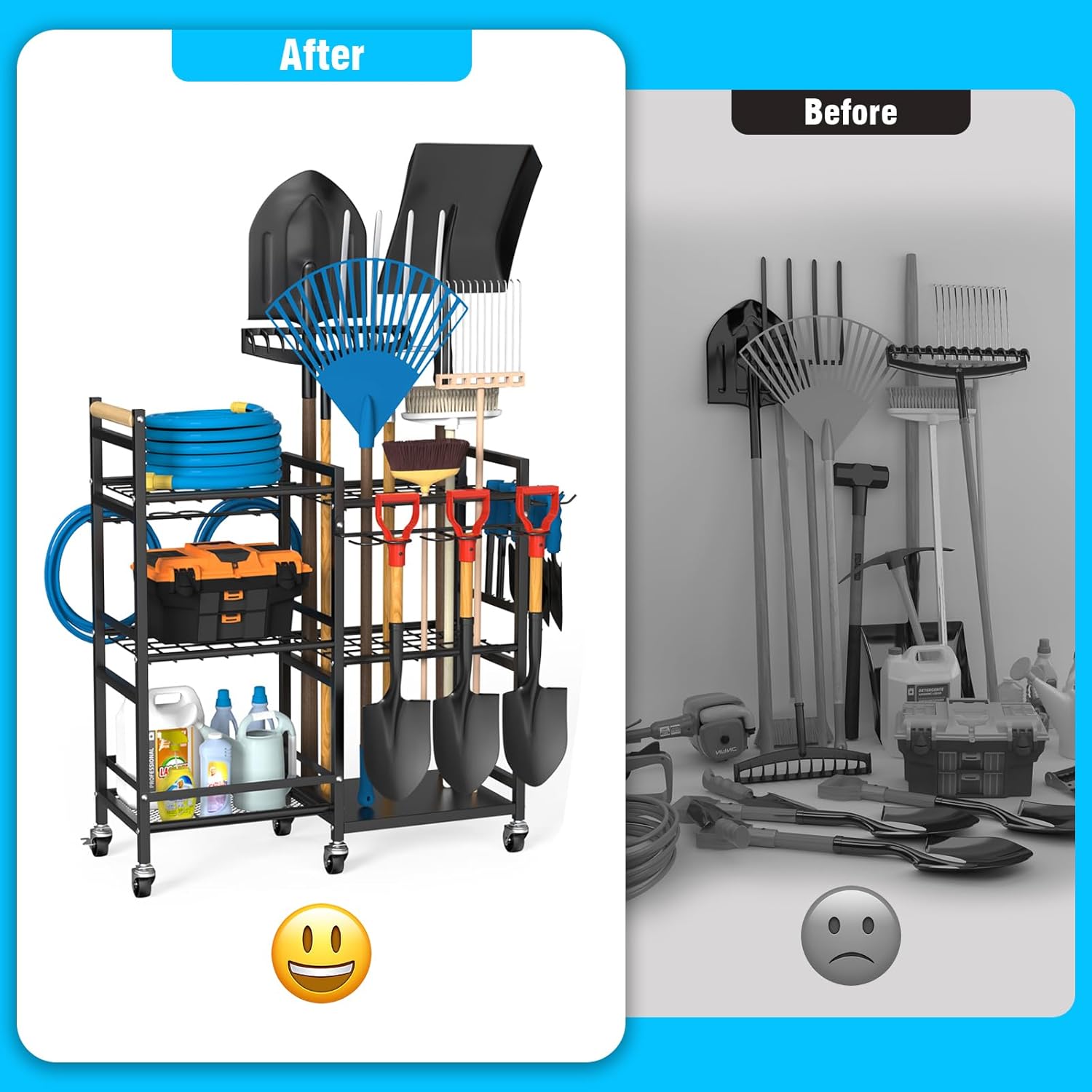 - Sturdy Metal Construction: Our tools rack is constructed from sturdy metal, ensuring it can handle heavy tools without a problem. The thickened waterproof anti-rust coating provides durability for both indoor and outdoor use, making the shelf last longer.