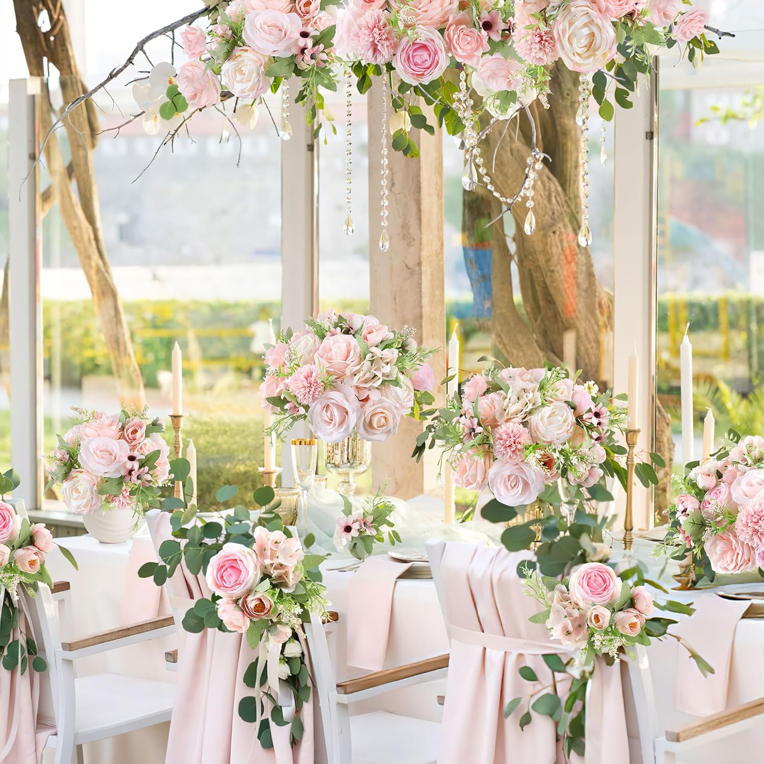- Pink Roses Artificial Flowers Set: This fake flowers set box consists of different types and colors of fake flowers. Handmade roses artificial flowers come with flower stems. These pink roses artificial flowers for decoration can be used as wedding shower decorations, floral arrangement, wedding centerpieces for tables, baby shower home decorations