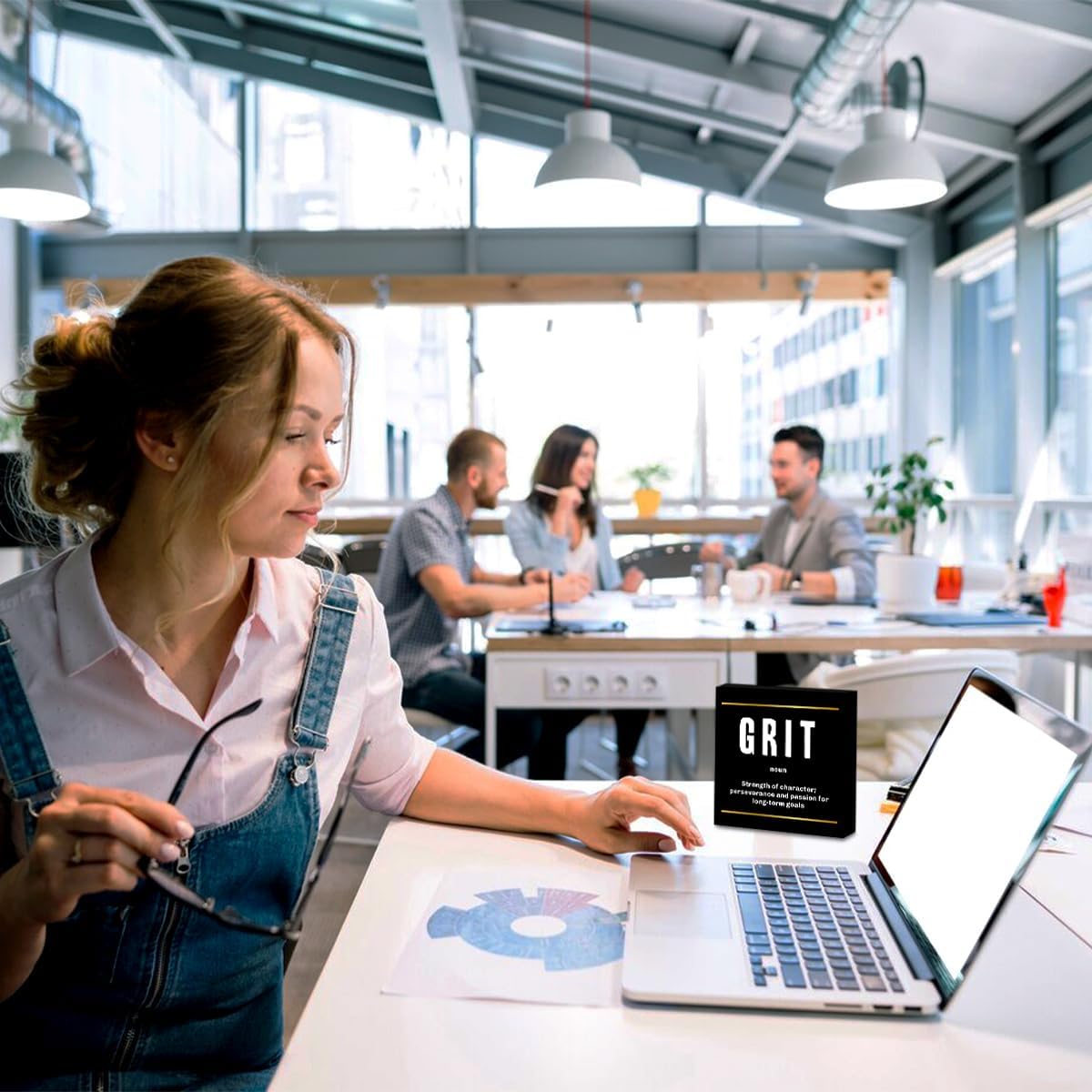 Grit Noun Entrepreneur Black Wooden Box Sign, Inspirational Office Decor Decorative Table Shelf Desk Decor, Rustic Workplace Farmhouse Home Bedroom Classroom Office Decorations Desk Accessories