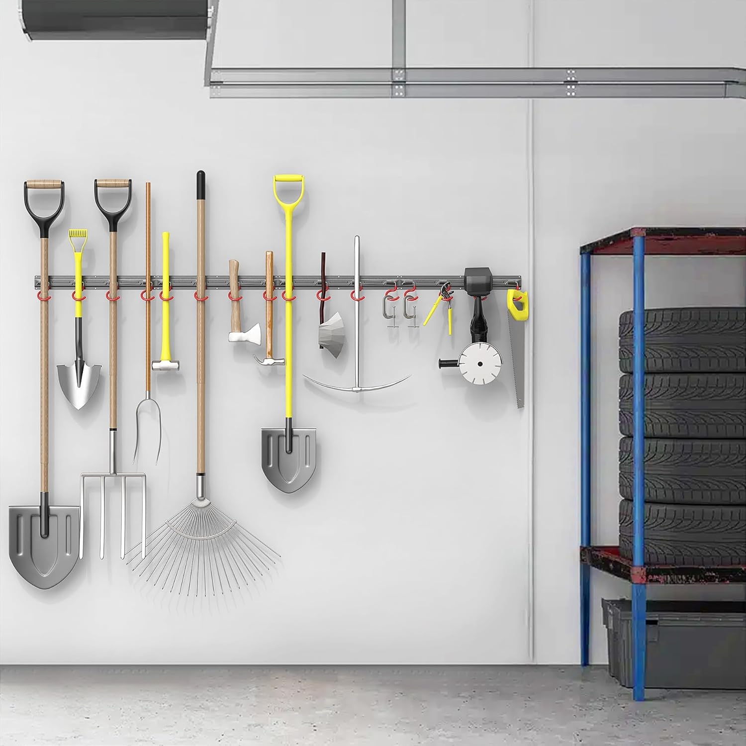 - Wall-Mounted Tool Organizer: Declutter your garage, shed with this sleek, all-metal tool rack. Perfect for storing tools like rakes, shovels, brooms, mops and more in a neat, wall-mounted setup