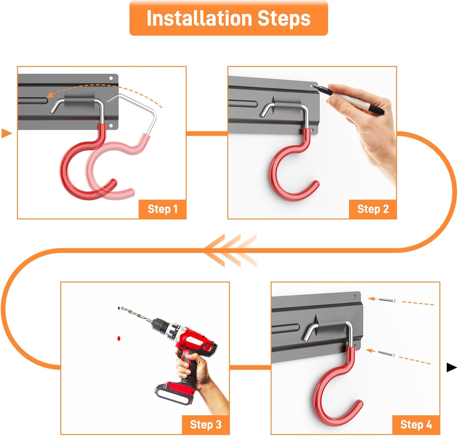 - Durable and Lightweight Design: Made from sturdy yet lightweight metal with rubber-coated hooks to prevent scratches, this tool hanger holds up to 96 lbs (6 lbs per hook), making it perfect for heavy-duty tools