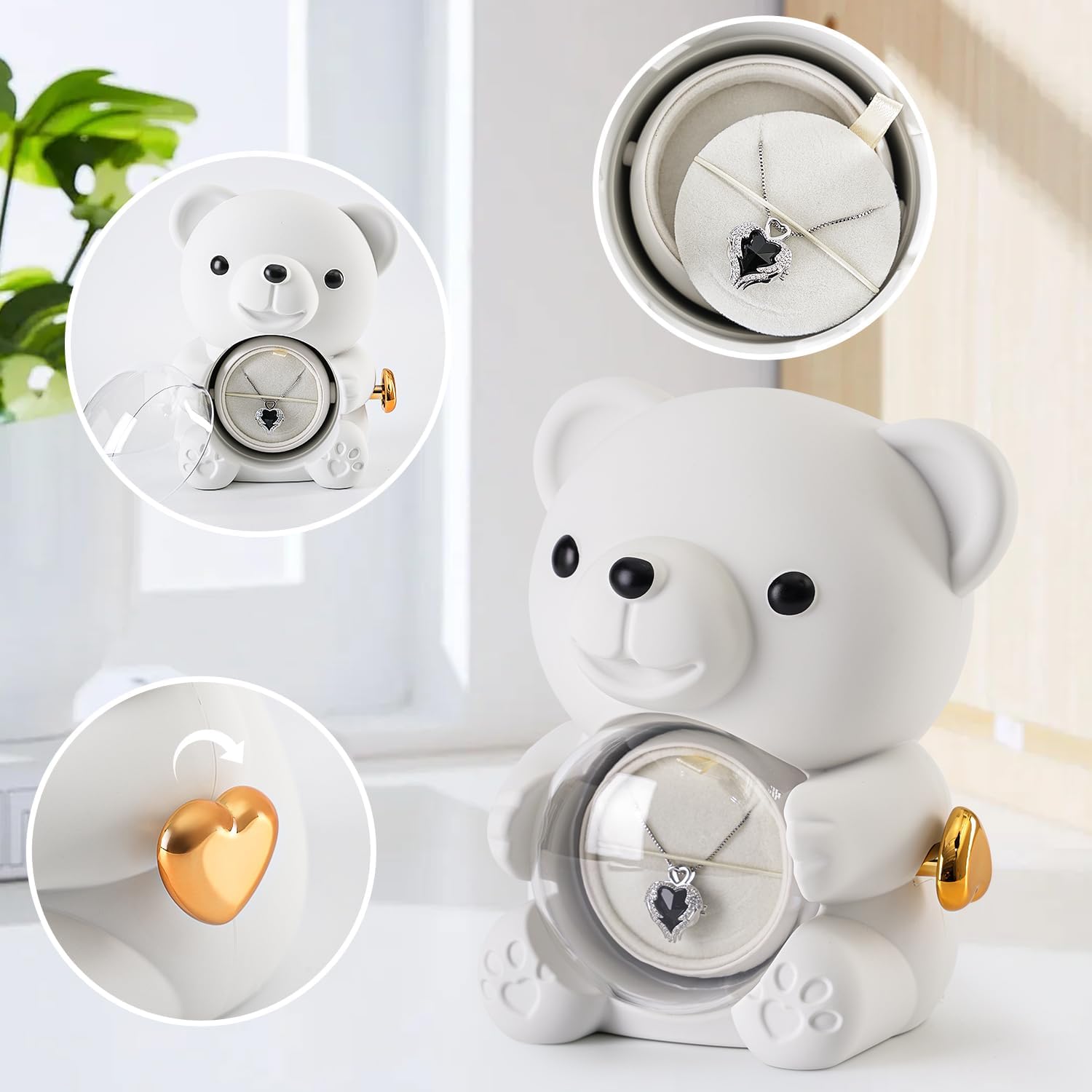 - 💖 Unique & Cute Bear Design: The adorable teddy bear holds a stunning preserved rose inside a transparent plastic cover. Rotate the golden heart-shaped knob to reveal a hidden jewelry box behind the rose, adding an element of surprise for your beloved one!